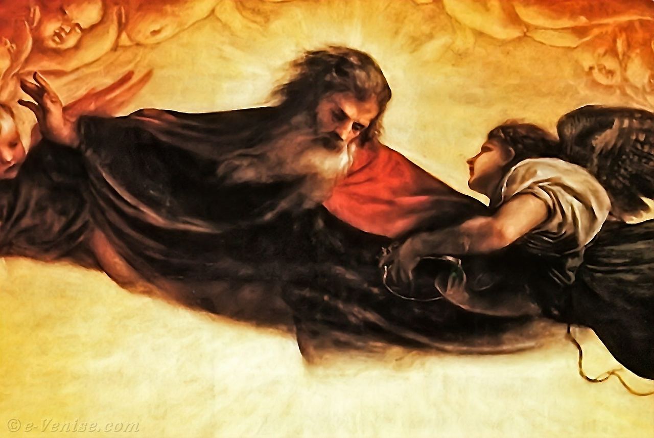 베네치아가 전염병으로 고통받던 시기에 제작된 작품입니다. 티치아노 자신과 그의 아들 오라치오의 구원을 비는 간절한 염원이 담긴 작품이지요. 또한, 죽음, 성찬례, 부활이라는 주제를 중심으로, 그리스도의 희생과 구원을 상징적으로 표현하고 있습니다.