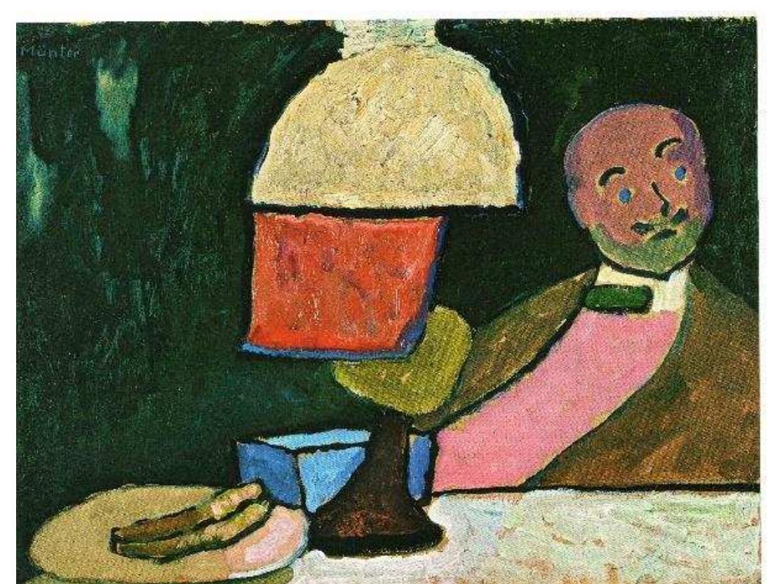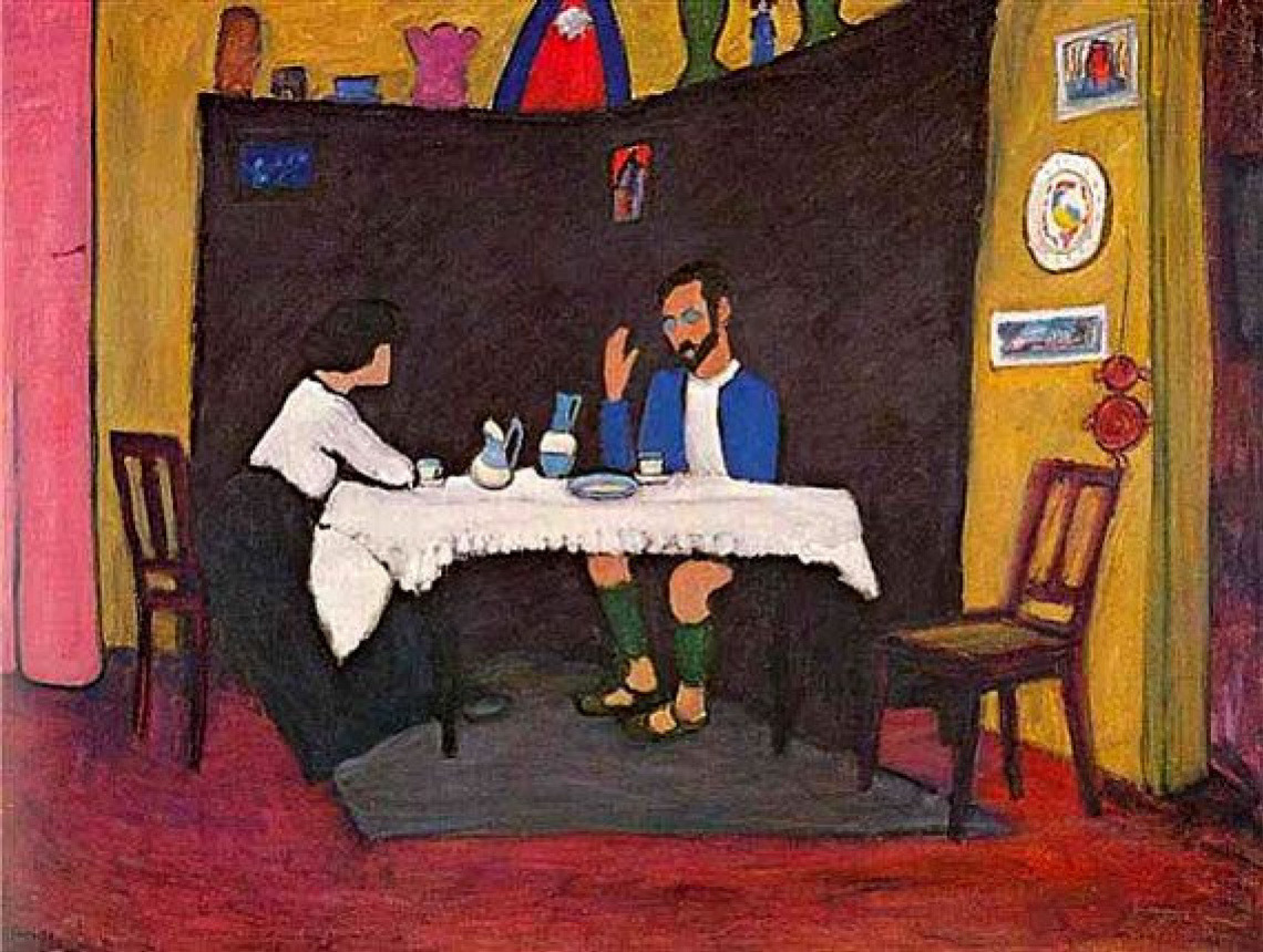 가브리엘 뮌터의 < Kandinsky and Erma Bossi at the Table in the Murnau House>(1912) 작품입니다. 뮌터가 친구이자 동료 예술가인 바실리 칸딘스키와 에르마 보시를 묘사한 그림입니다. 무르나우라는 작은 바에에른 마을에서의 일상을 담고 있습니다.
