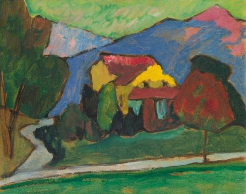 가브리엘 뮌터의 < The Russian House>(1931) 작품입니다. 이 집은 당시 지역 주민들 사이에서 '러시아인의 집( Russian House)'이라 불렸습니다. 뮌터가 예술가 바실리 칸딘스키와 함께 거주하던 곳이며, 뮌헨 아방가르드 미술 운동인 청기사파 ( Der Blaue Reiter)의 중심지 역할을 한 장소였습니다. 특히 이 그림은 뮌터의 삶과 예술이 깊게 녹아 있는 풍경화로, 그녀가 살던 공간을 통해 내면의 정서를 담아내려는 시도를 보여줍니다.