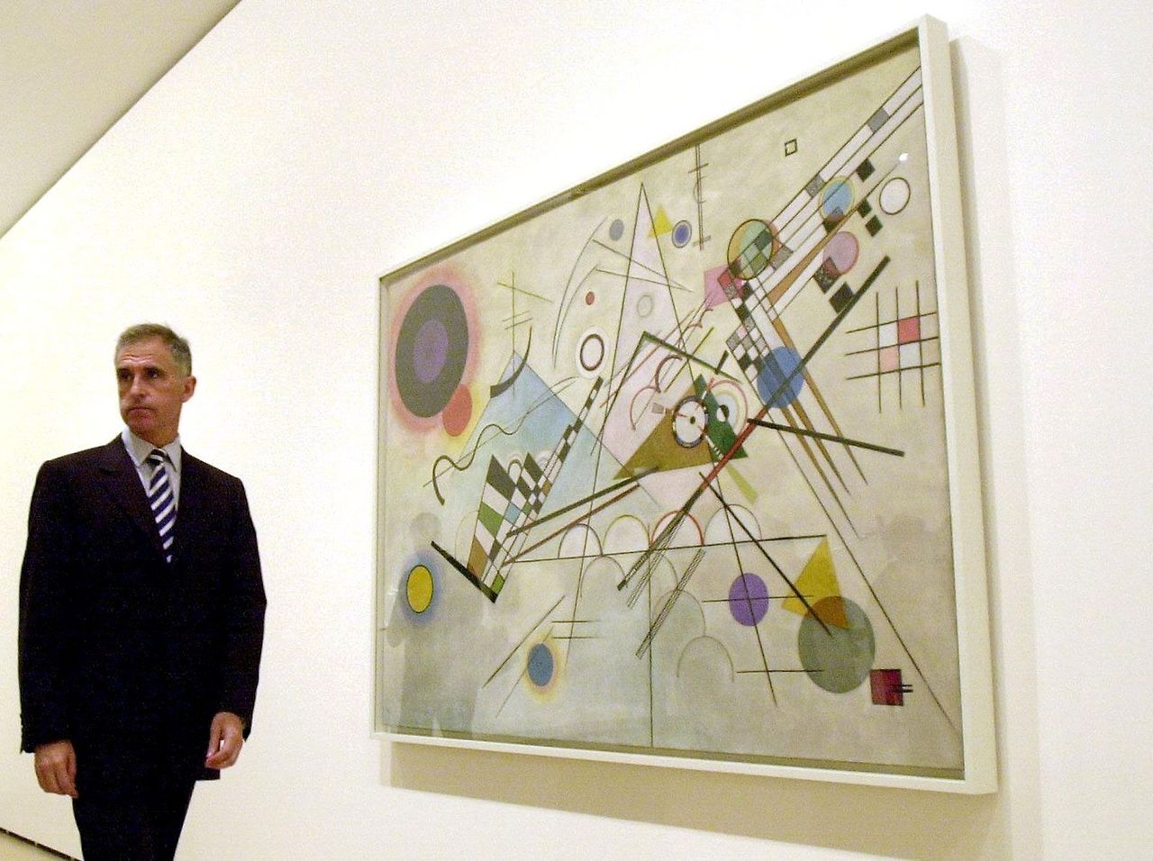 구상 이미지를 벗어나 순수한 기하학과 색채를 통해 내면의 정신세계를 표현하고자 했습니다. 시각 예술과 음악의 경계를 허문 혁신적인 시도로 평가받고요. 또한 당시 영향받은 러시아 구성주의와 슈프레마티즘의 요소를 흡수해 그만의 독창적인 예술언어를 만들었습니다. 이 작품은 미국의 수집가 솔로몬 R. 구겐하임의 초기 구입 작품 중 하나로, 현재 뉴욕 구겐하임 미술관에 소장되어 있습니다.