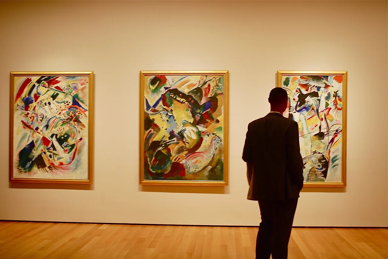 이렇듯 칸딘스키는 음악과 미술의 깊은 연관성을 믿었습니다. 색채를 건반, 눈을 망치, 영혼을 현이 있는 피아노에 비유했고요. 그는 음악의 비가시적 소리를 시각적 형태와 색채로 변화하려 시도했습니다. 이를 통해 관람자는 그림을 바라보며 음악적 경험을 느낄 수 있다고 생각했습니다. 그의 이러한 공감각적 접근은 추상미술 발전에 커다란 역할을 하였습니다.