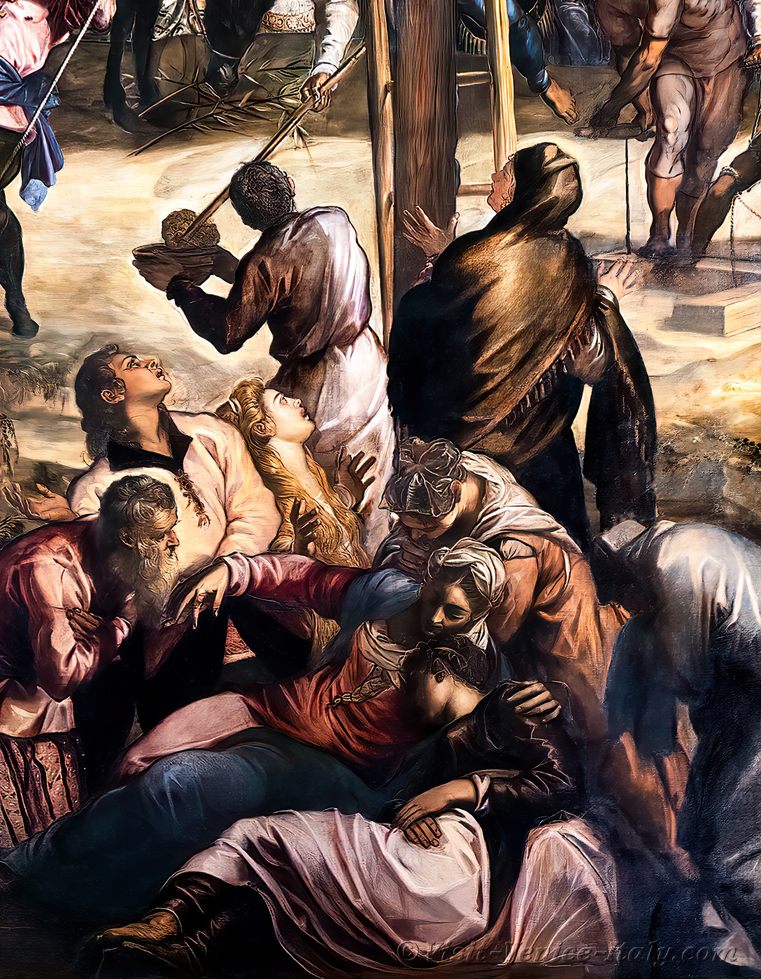 십자가 아래 슬픔에 잠긴 성모 마리아, 요한, 여인들의 모습은 고통과 사랑, 충실함을 보여줍니다. 작품 전체에 흐르는 드라마틱한 분위기 속에 , 틴토레토는 정통 가톨릭 신앙의 교리(자비, 희망, 부활신앙)를 시각적으로 극대화하여 보여줍니다. 당대 종교개혁과 가톨릭 반종교 개혁의 역사적 상황 속에서, 이 그림은 근본적인 희망, 신앙의 영속성, 인간 내면의 변화와 구원을 기념하는 상징적 의미를 가집니다.