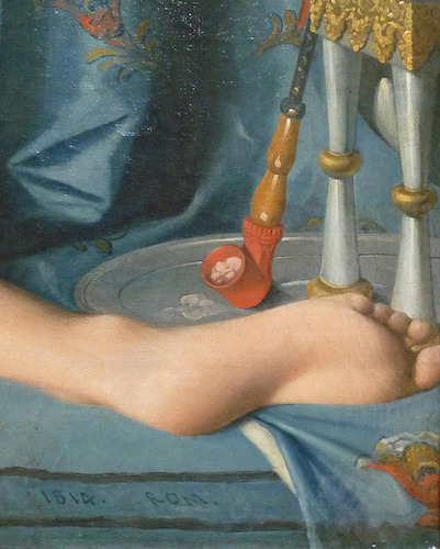 앵그르가 20대 시절 그린 < Napoleon on his Imperial Throne>(1806) 작품입니다. 대형 유화 작품으로, 파리의 뮈제 드 라르메(군사박물관)에 소장되어었습니다. 매우 웅장한 스케일로 나폴레옹 1세의 즉위 복장을 묘사한 작품입니다. 그의 정치, 군사적 권위를 극대화한 모습이고요.