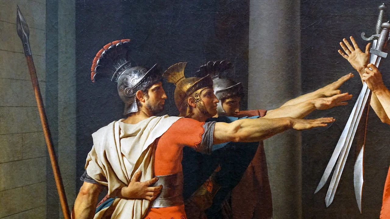 자크 루이 다비드(Jacques Louis David , 1748-1825)의 <호라티우스 형제의 맹세 Oath of the Horatii>(1784)는 신고전주의 역사화의 대표작입니다. 현재 프랑스 파리 루브르 박물관에 소장되어 있고요. 작품은 프랑스혁명을 불과 몇 년 앞둔 시기에 탄생했습니다. 고대 로마의 전설을 모티프로 하여 국가에 대한 충성과 희생, 공공의 선을 위한 개인의 헌신이라는 주제를 강렬하게 시각화하고 있습니다.