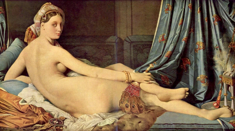 장 오귀스트 도미니크 앵그르의 <오달리스크 La Grande Odalisque>(1814) 작품입니다. 이 작품은 나폴레옹의 여동생이자 나폴리 왕비인 카롤린 뮈라(Caroline Murat)의 의뢰로 제작되었습니다. 당시 프랑스 후기 신고전주의와 초창기 낭만주의의 경계에 위치하면서, 미술사적으로도 중요한 전환점에 해당하는 대표작입니다.
