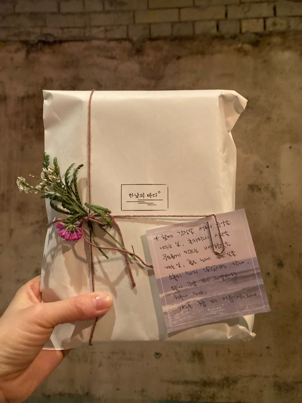 포장지 한가운데 박힌 서점의 로고.