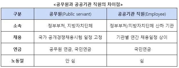 공무원과 공공기관 직원은 이런 점에서 다르다.