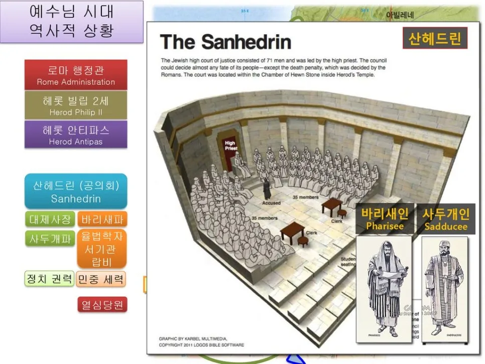 ‘교감은 없었으나 체포하거 가는 자리에 왕궁에서 보낸 사람도 무리중에 있었으니, 헤롯왕도 이 내용을 이미 잘 알고 있을 것입니다. 아울러 이번 사태가 예루살렘의 치안확보와 분쟁의 해결 차원에서라도 산헤드린의 판결에 동의하리라는 확신이 나에게는 있습니다.’
