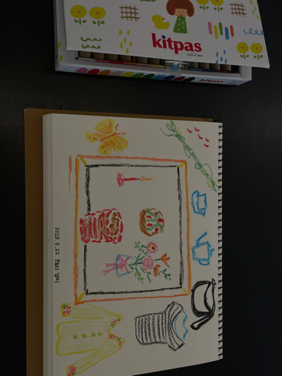외부의 소음을 잠시 조용히 시킨 채로 내 마음에 집중하는 시간. 선물로 받은 크레용과 펜. 종이에 요새 느꼈던 감정을 그려나간다.