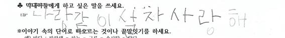 막내아들하고 같이 살고 싶다고? 7살이라 글로 적는 것이 아직 서툰 딸은 내가 불러주는 자음과 모음을 받아 적으며 막내아들에게 프러포즈하듯 진심 어린 마음을 글로 남겼다.