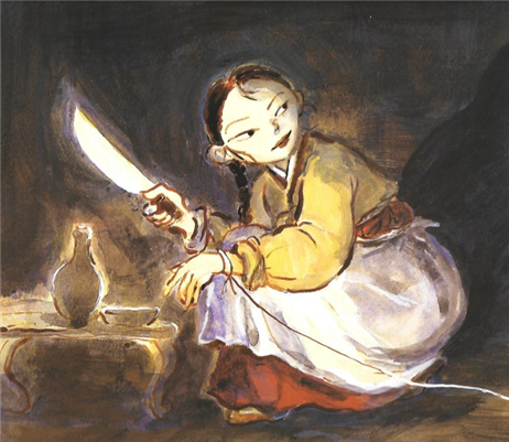 하루 종일 외양간을 지키던 막내아들은 누이가 재주를 넘어 여우로 변해 소의 간을 빼먹는