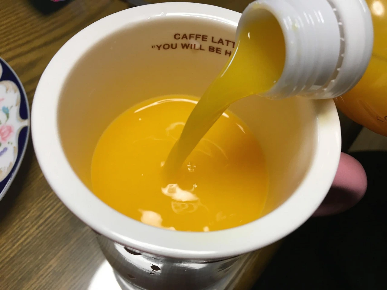 오늘의 한 끼와 잘 어울릴 오렌지 주스 한잔 또로록 따라봅니다