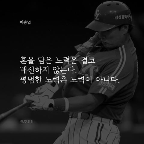 국민타자가 되기까지의 무한히 기울였을 이승엽 선수의 노력이 가늠조차 되지 않는다. 다만 그의 말처럼 혼을 담은 매우 특별한 노력을 무한히 기울였음을 짐작할 뿐이다. 국민타자라는 왕관의 무게를 멋지게 견뎌낸 그가 존경스럽다.