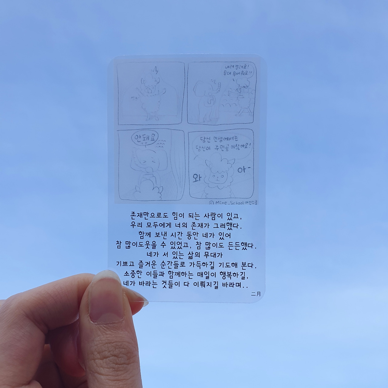 이제 우리가 함께 일을 하진 않지만, 네가 무엇을 하든 잘 해내리라 믿는다. 네가 걸어가야 삶에서 이루고자 하는 것들이라고 이뤄지길 바란다. 네가 네 삶의 완전한 주인공이 되길 바란다. 그리고 언젠가 다시 꿈을 이뤄갈 날이 온다면 있다면 꼭 함께 하자. 너의 존재가 또다시 우리에게 힘이 되길 그려보며..