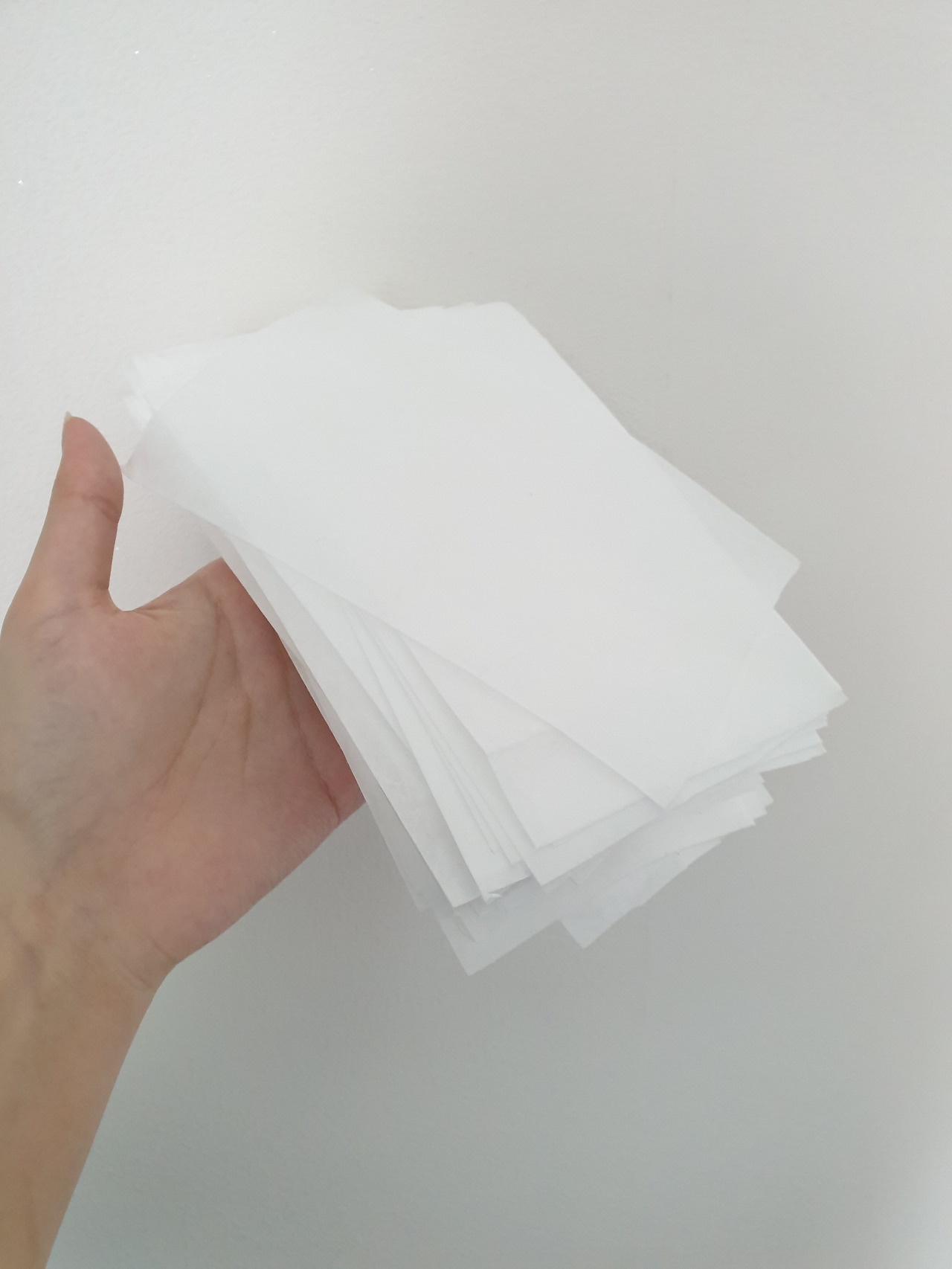 그 방법대로 만들기로 하고 재료를 찾아보았다. 우선 마스크 겉감과 안감의 기능을 해줄 것은 면 100% 행주로 했다. 청소포도 있었지만 얼굴에 닿을 마스크라 면 100%가 좋아 보였다. 그리고 가장 중요하게 생각한 부분을 필터였다. 멜트블로운이라는 소재가 KF 94 마스크 필터에 쓰인다고 해서 검색을 해보니 대부분이 품절되어 구하기가 어려웠다. 한참을 뒤지던 중 멜트블로운을 구할 수 있었다. 많이 사고 싶었지만 수량이 많지 않아 6M 정도를 구매할 수 있었다. 80개가량의 마스크를 만들 수 있는 양이었다. 그런 다음 빵끈, 의료용 테이프, 고무줄을 구매했다.