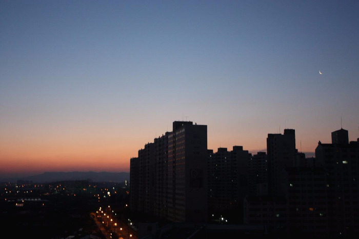 어느 날 새벽, 아침 일찍 집을 나서면서 우연히 보게 된 창밖 풍경에 가던 길을 멈추고 카메라를 꺼내 셔터를 눌렀다. 내가 아침이라고 착각하는 걸까 하는 착각이 들 정도로 해가 지고 있는지 뜨고 있는지 구분이 안 가는 순간이었다. 문득 시간이란 너무 상대적이라는 생각을 했다. 그냥 눈에 보이는 대로 지금을 해가 지고 있는 순간이라고 믿어버리고, 그냥 침대로 들어가서 푹 쉬어버리면 어떤 일이 일어날까? 잠을 잘수록 어둠이 아닌 햇살이 깊어지겠지?