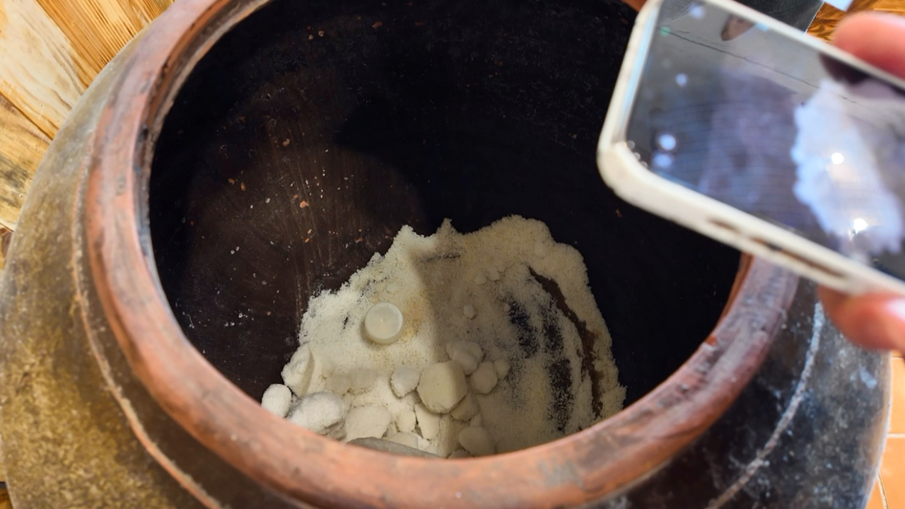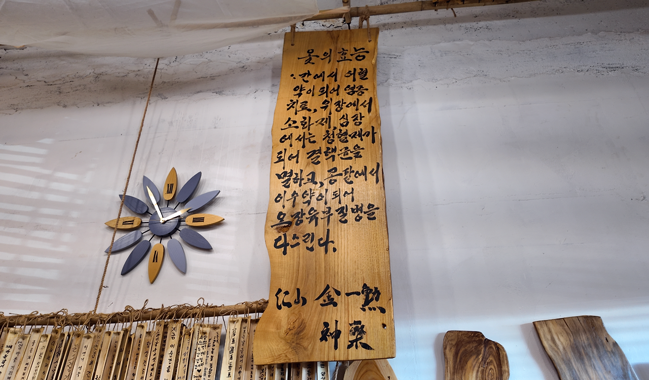 이번에는 내 옆에 있는 항아리를 열었다. 장식품인 줄 알았는데, 안에 옻소금이 담겨 있었다. 옻물을 부어 소금을 녹이고, 마를 때까지 볶은 뒤, 한 번 더 곱게 갈았다고 한다. 이 모든 걸 직접 했다니, 감탄사가 절로 나왔다. 그런데 얼마 안 남았다. 허리를 깊숙이 꺾어서 바가지로 한껏 퍼올린 사장님. 나와 동생에게 정확히 똑같은 양을 봉지에 담아준다. 누가 더 많이 받았느니 마느니 싸울 수 있다는 걸 알고 있었나. 우리보다 우리 사이를 잘 아는 것 같다.