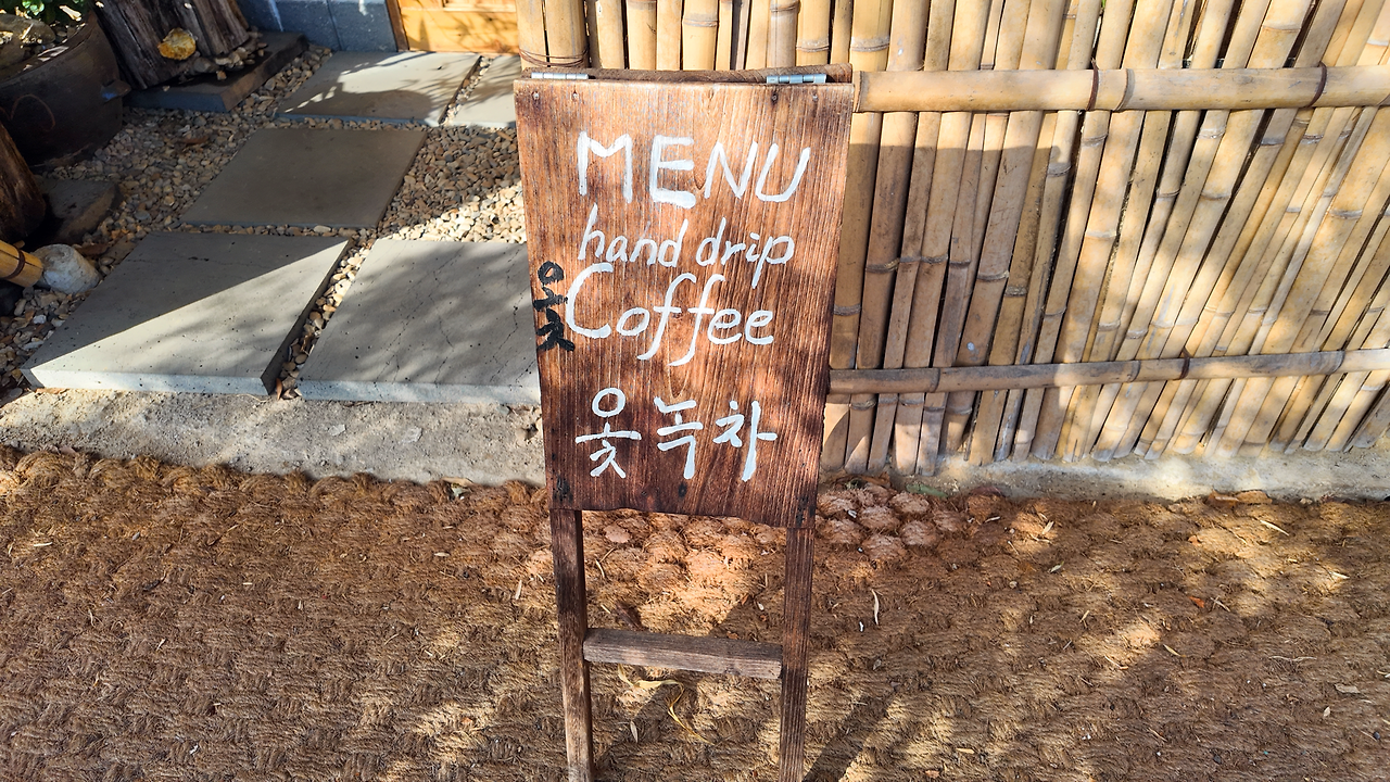 대나무 울타리도 매력적이고, 나무 입간판도 예쁘다.