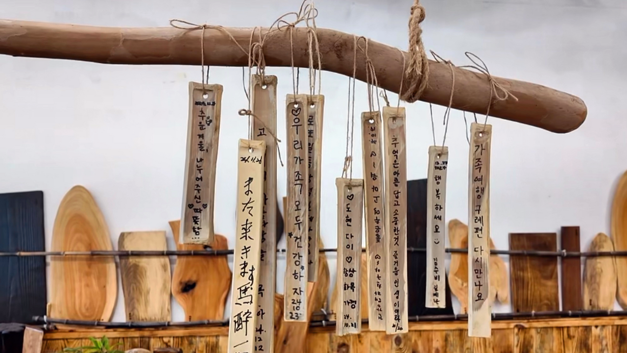 “이 대나무는 우리 가게 방명록이야.