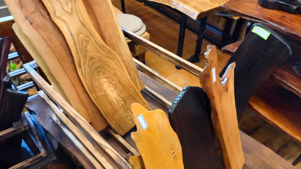 사장님이 만든 원목 아이템을 하나 사야겠다. 평소 가지고 싶었던 차판을 구경했다. 이 많은 종류 중에서 똑같은 모양이 단 하나도 없었다. 수공예의 매력이 빛나는 순간이었다. 그중에서 결이 그대로 살아 있는 것을 골랐다. 차 전문점에서도 보지 못했던 고급스러운 작품이다.