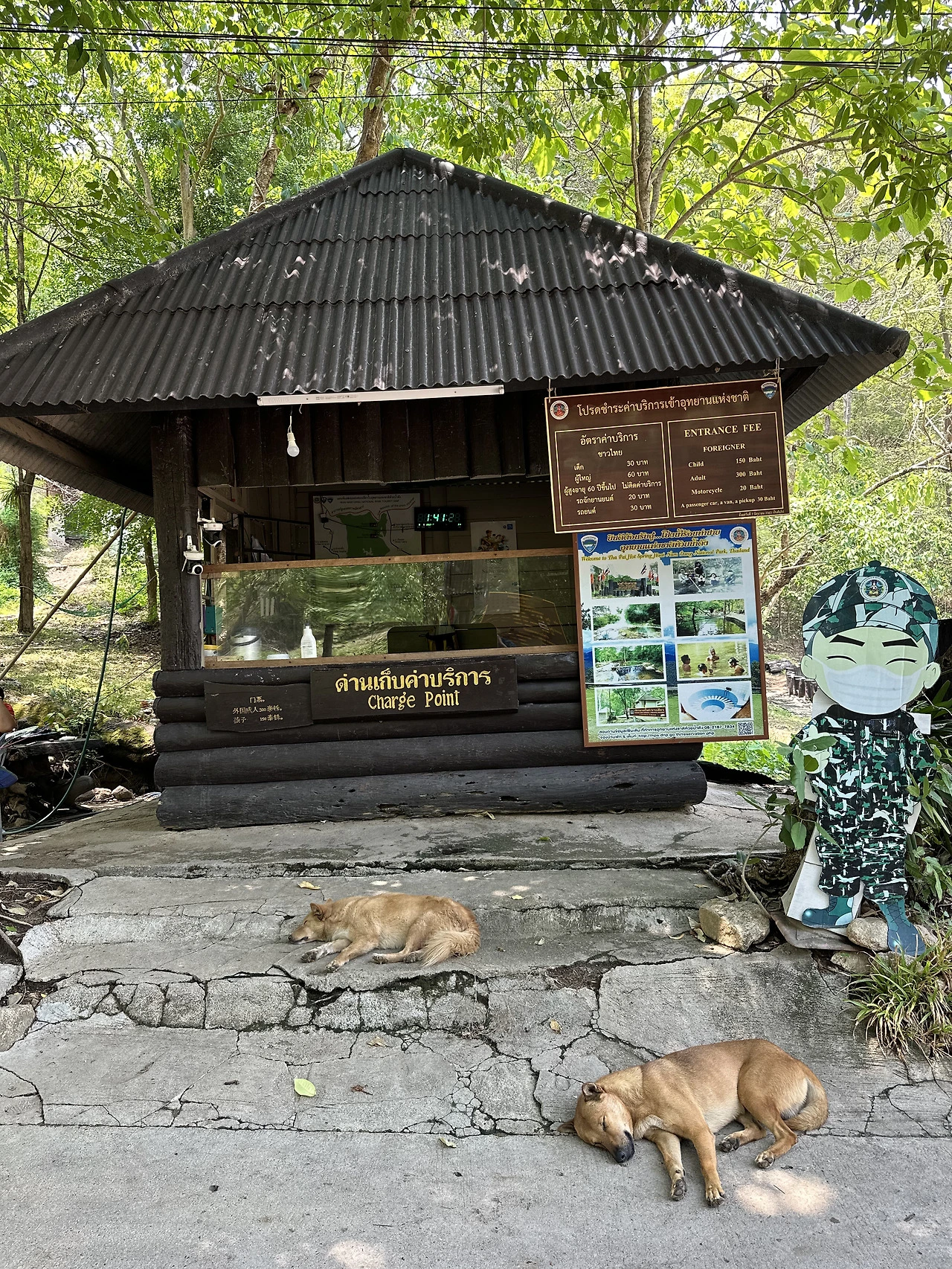 여기까지 걸어왔는데, 이 무슨 청천벽력 같은 소리야. 앉을 데도 없고, 다시 숙소에 돌아가자니 짜증이 났다. 그늘에 늘어져 자는 저 강아지가 상전이로세. 그 옆에 엉덩이 한 짝을 겨우 걸치고 앉아 땀을 식혔다. 나처럼 허탕 친 사람이 열댓 명은 되어 보였다. 그래도 오토바이가 있으니 다행이지, 나 같은 뚜벅이는 절망뿐이다.