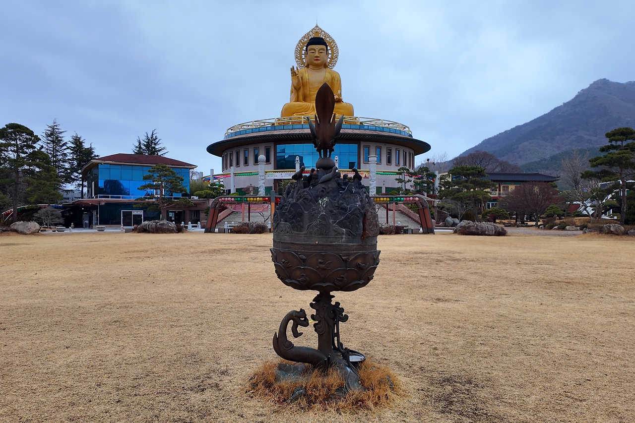 가까이에서 살펴보니 창건주 하도명화 보살의 탄생 100주년 기념 조형물이다. 그녀는 한국 최초의 아파트 신창 아파트를 건립한 부동산 업계의 큰 손이다. 임대업도 했다고 하니, 돈이 얼마나 많았을까. 개인과 후손의 행복을 위해서 쓸 법도 하지만, 그녀의 선택은 달랐다. 시가 400억 원에 달하는 15,000여 평의 부지를 기증하고, 심산스님과 홍법사를 지었다. 그녀는 어떤 세상을 만들고 싶었을까?