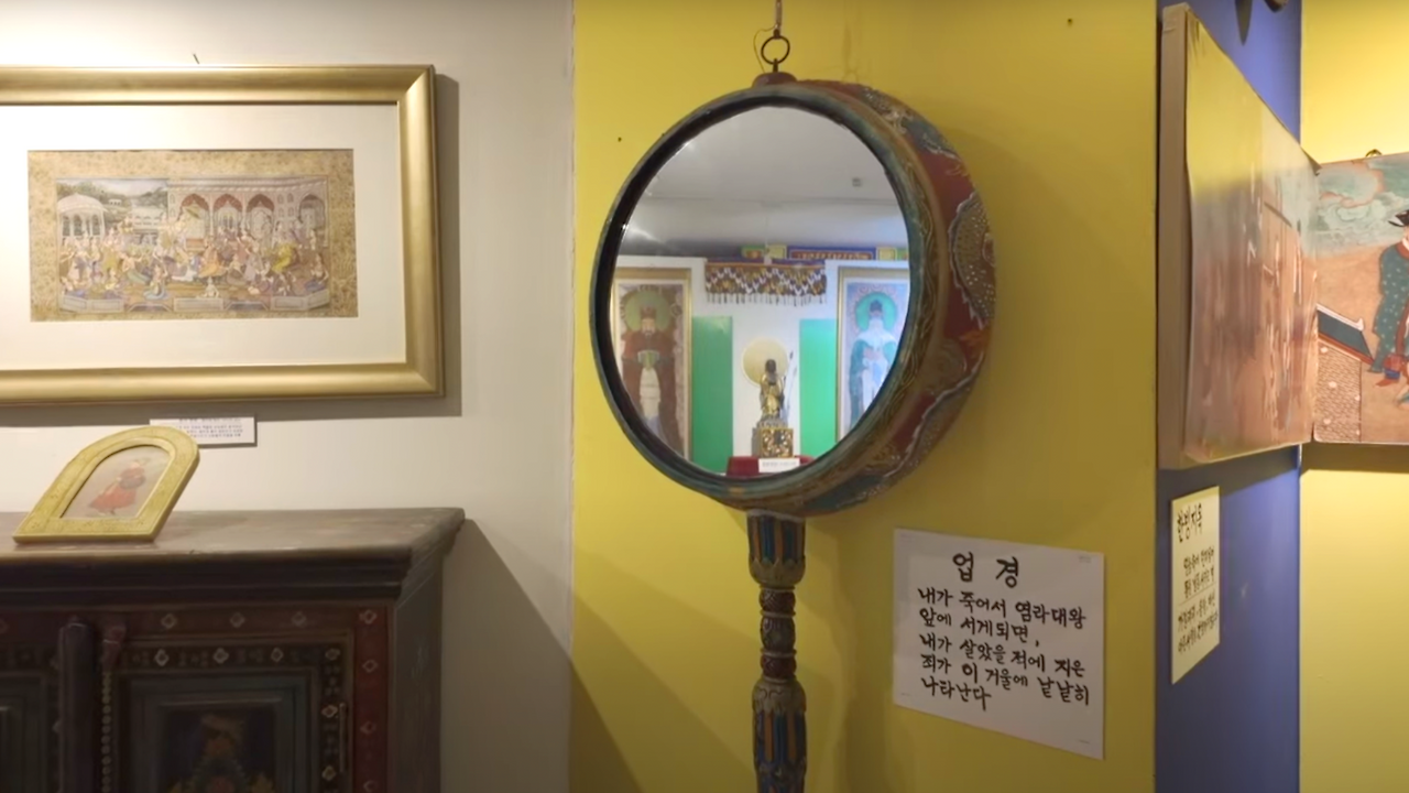 뒤편 거울에는 섬뜩한 문장이 새겨져 있었다. '당신이 죽어서 염라대왕 앞에 선다면, 살아생전 지은 죄가 여기에 낱낱이 보일 것입니다.' 저승에서는 거울조차 함부로 볼 수 없구나.