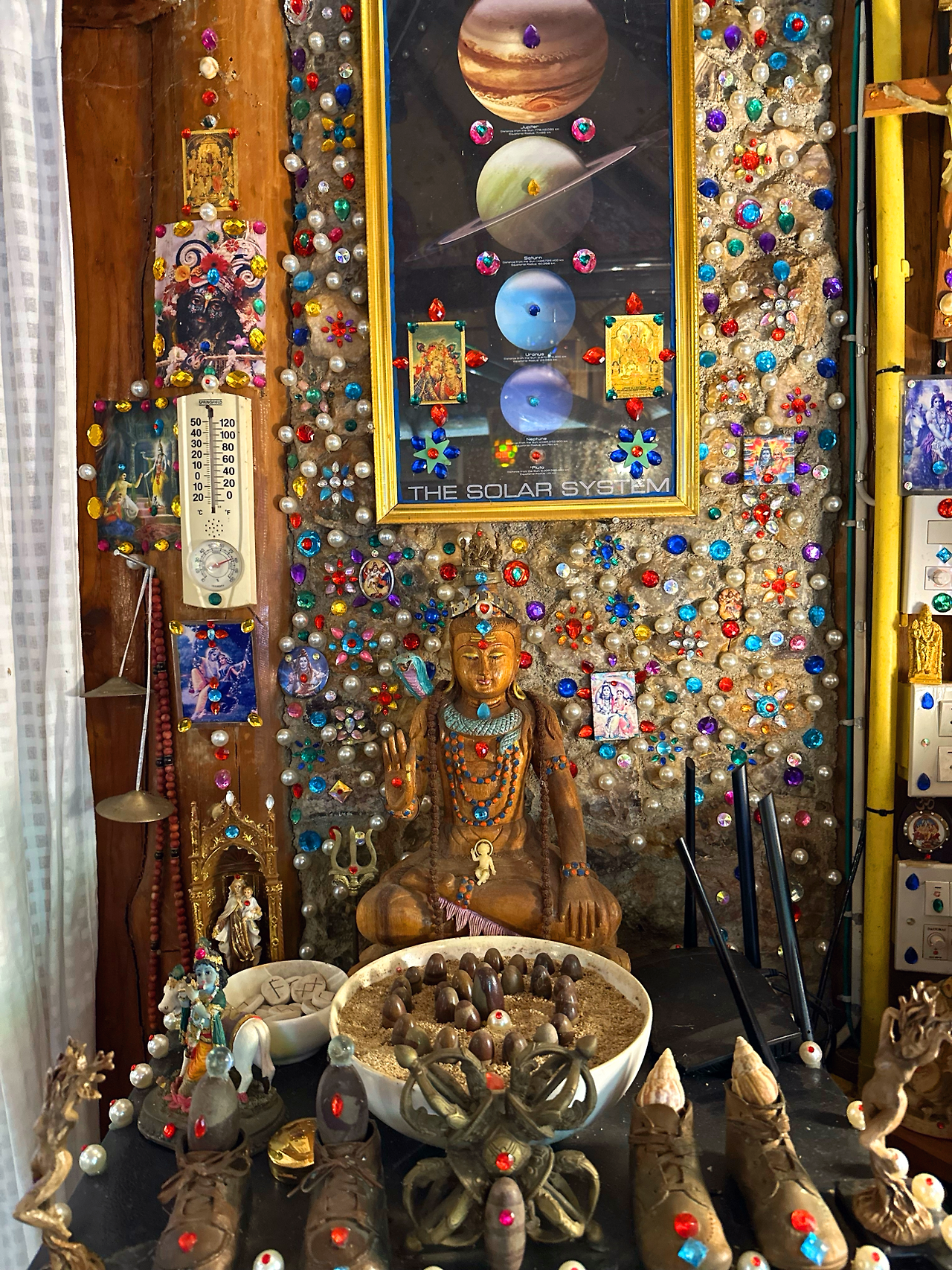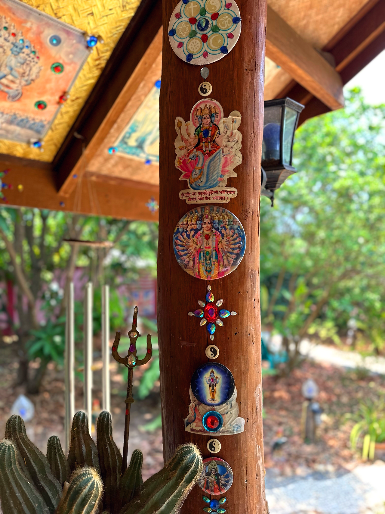 방에 캐리어를 내린 후, 키친 겸 거실로 사용하는 독채에 갔다. 기둥은 형형색색 구슬로 빽빽하게 장식되어 있었고, 천장에는 힌두 신들의 초상화가 나란히 걸려 있었다. 각종 조각상도 수십 개는 되어 보였다. 이 세상 모든 신들이 이곳에 공존하고 있으니, 신성한 기운이 흐르는 것도 당연했다. 보면 볼수록 종교학에 미치지 않으면 만들어낼 수 없는 작품이었다.