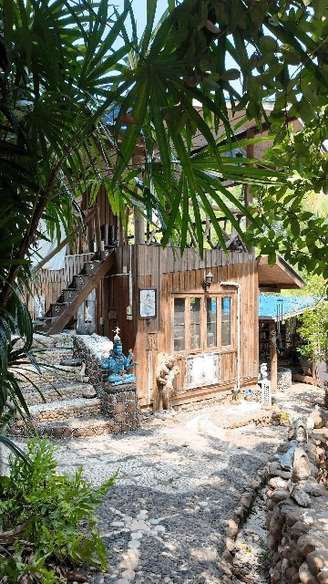 문득 그들의 배경이 궁금했다. 데이브는 종교학을 수십 년 동안 공부한 전문가란다. 책만 보았던 게 아니라, 전 세계를 여행하면서 신들의 세계를 탐구해 왔다고. 그 여정 끝에서 그는 우연처럼 빠이에 뿌리를 내리게 되었다. 녹은 요가 선생님이자 타로 카드 리더, 대체 의학 전문가였다. 이 집은 그들의 인생이 고스란히 스며든 공간이었다.