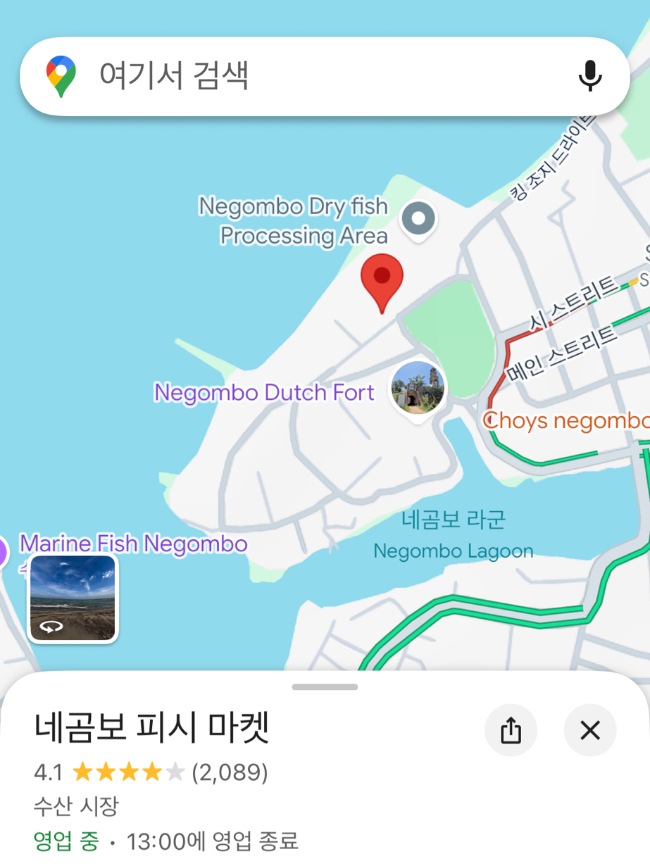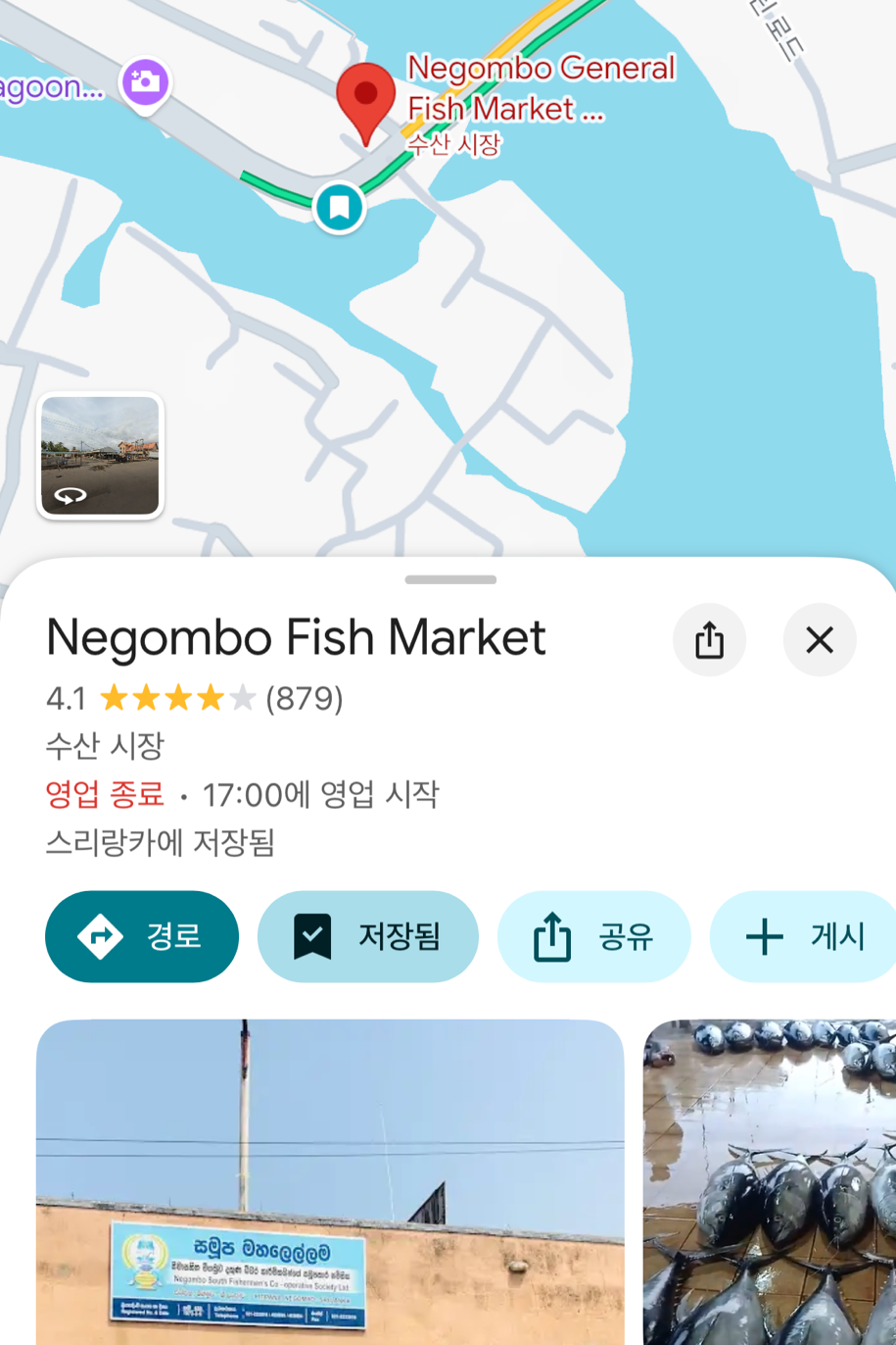그렇다면 아침에 다녀온 시장은 어디였을까. 구글 지도에 등록된 이름은 네곰보 제너럴 수산시장이었다. 갑자기 나타난 툭툭 기사가 엉뚱한 목적지에 내려준 덕분에 훨씬 선명한 하루를 보내게 된 셈이다.