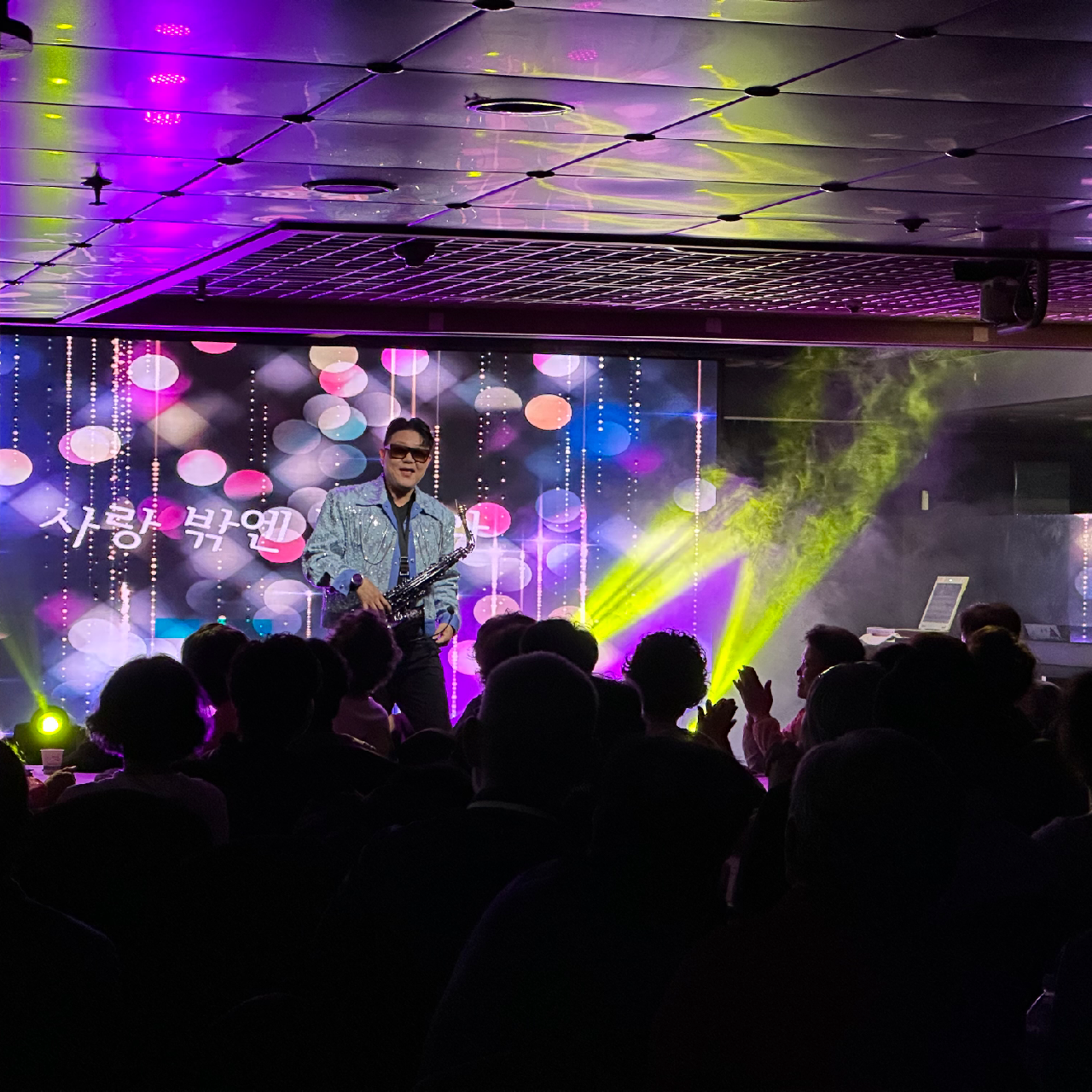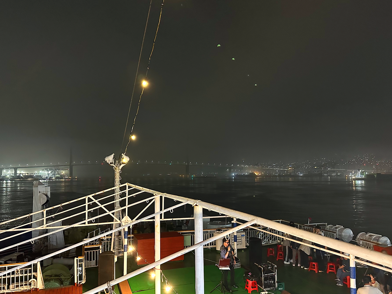 우리가 먹고 노는 사이, 색소폰 연주자가 재즈를 불어넣었다. 아저씨, 아줌마들은 신나서 목청껏 노래를 부르기 시작했다. 그야말로 바다 위를 달리는 노래방이었다.