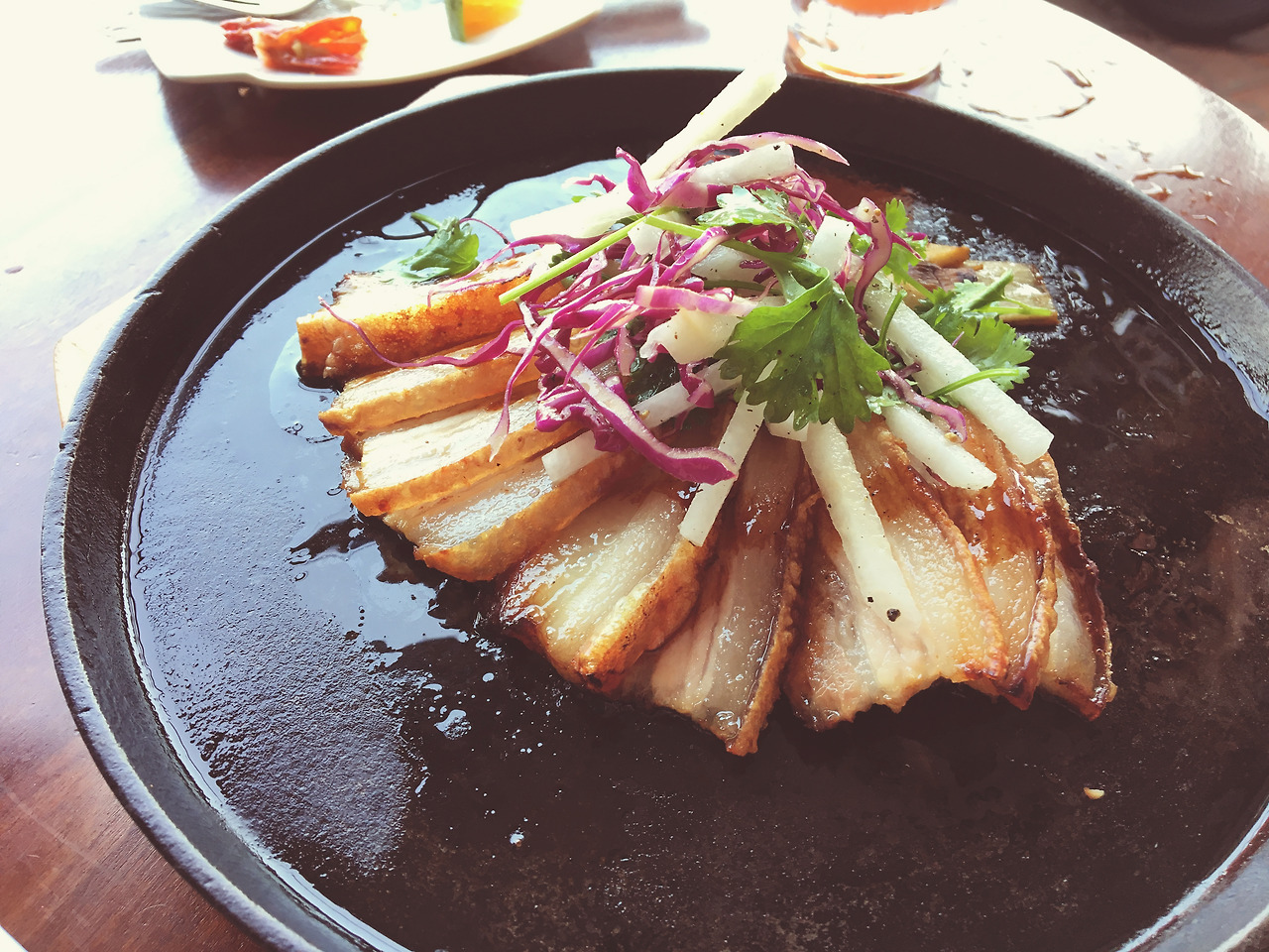 여긴 음식도 괜찮지만 작업하기에도 좋은 환경이다. 이곳에서는 VnaGogh 칵테일과 이름은 기억나지 않지만 구운 새우가 나온 샐러드? 같은 음식이 있었는데, 그 두 가지가 맛있었다. 버거도 추천한다. 아래 있는 고기는 삼겹살인데 너무 질겨서 먹기 힘들었다.