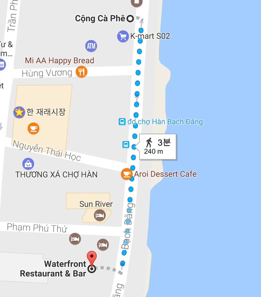 트립어드바이저에서 다낭 맛집 1위로 나오는 곳이다. 다낭에서는 햄버거나, 인스턴트식품을 파는 곳이 잘 없는데, 여기는 파스타 햄버거 등등 외국인들이 그러워할? 음식들이 메뉴에 많다. 그래서 1위가 된 것 같기도 하다. 안타깝게도 사진이 없다. 있어도 올리고 싶지 않은 게 난 여기 음식을 먹고 배탈이 났다 ㅠ (나만 그랬다.)