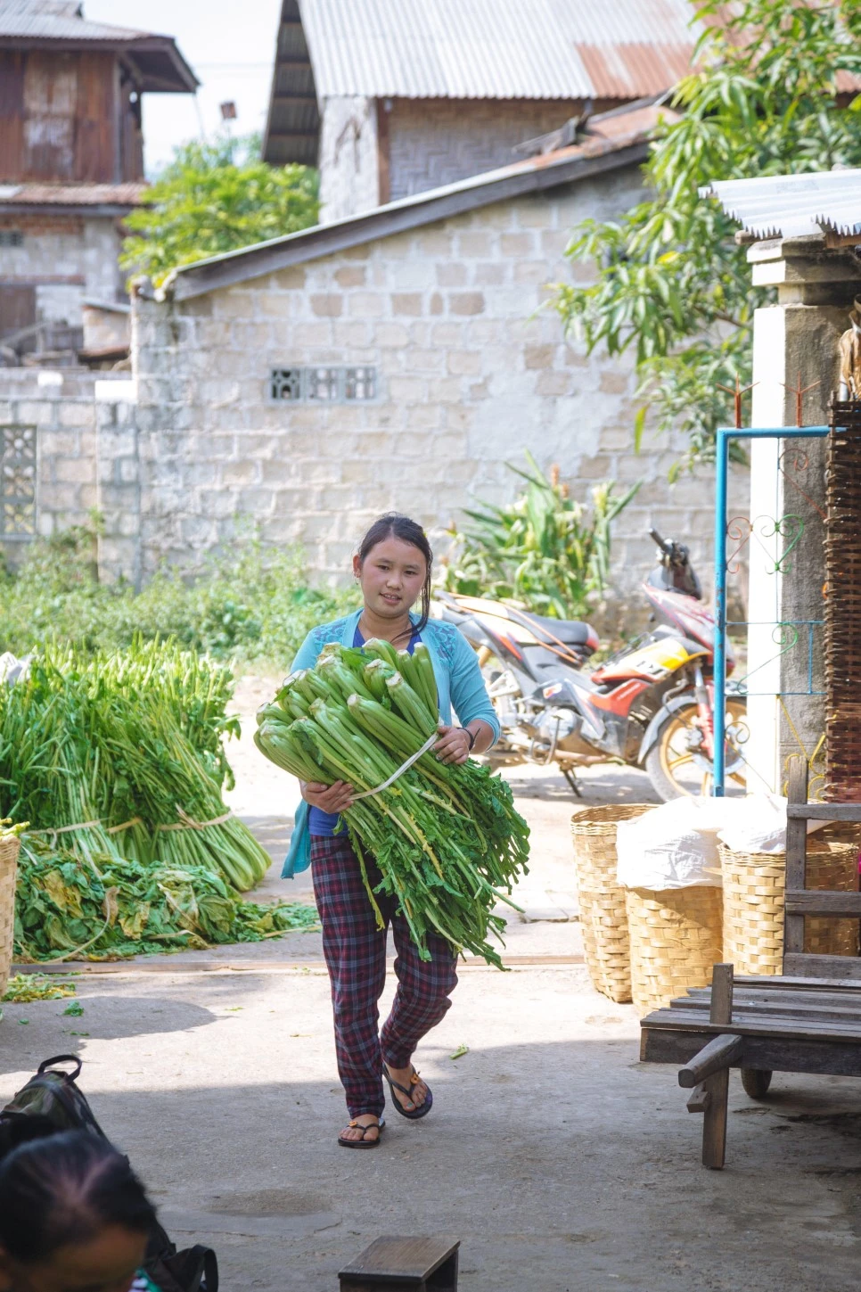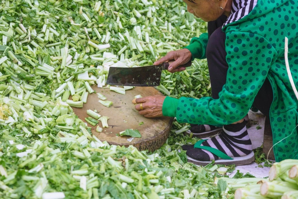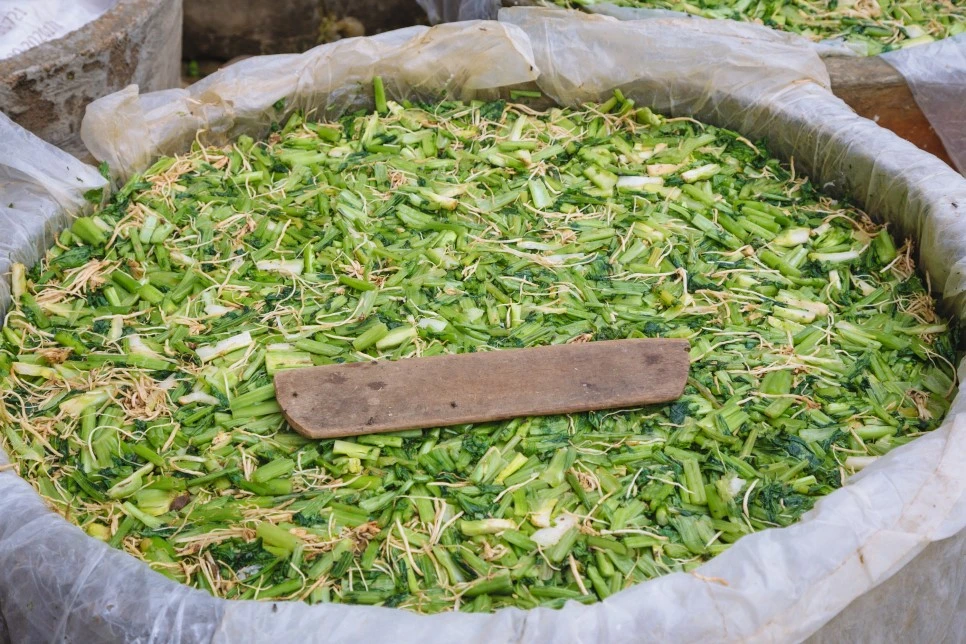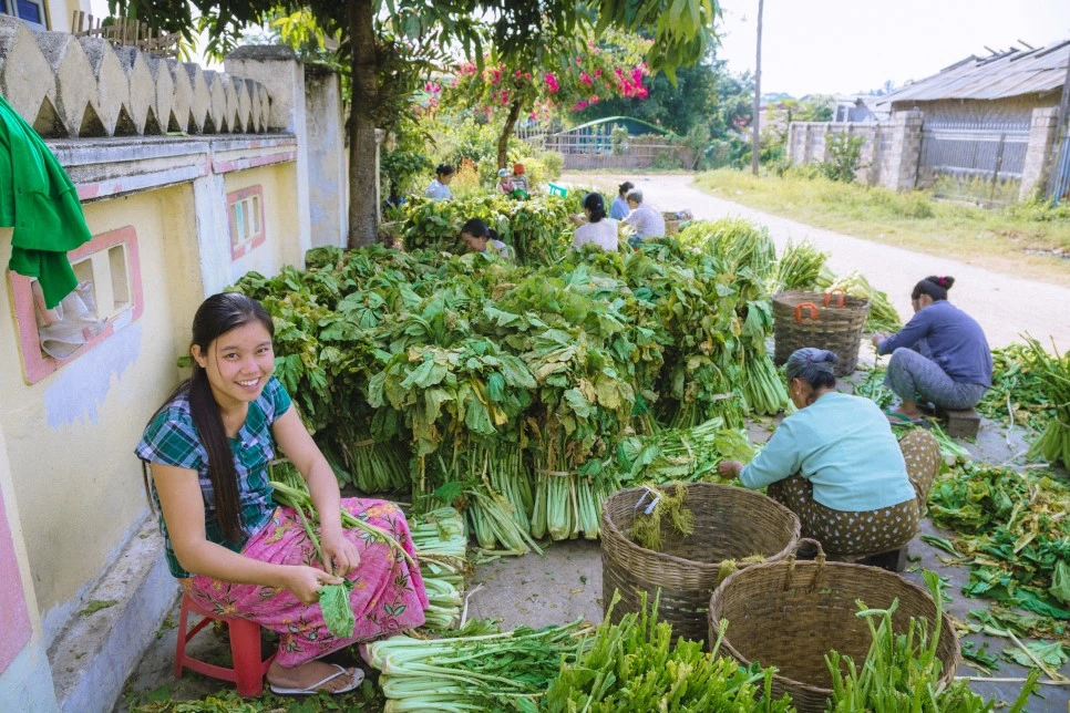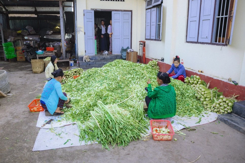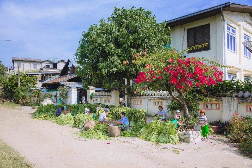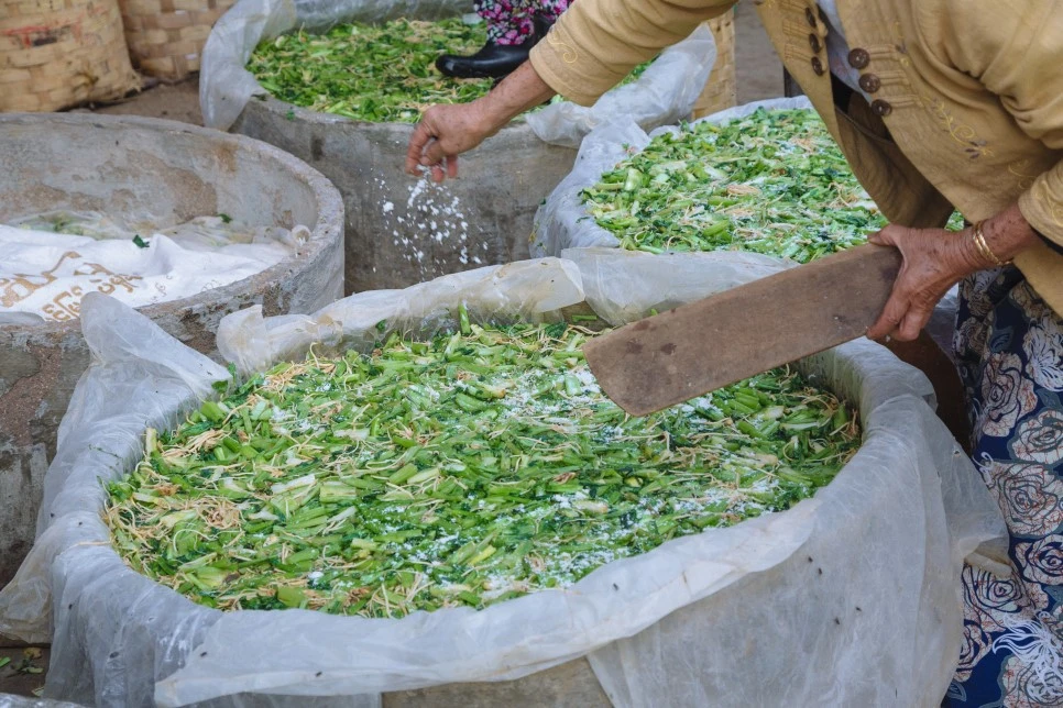 미얀마엔 '칫빳(chin pat)’이라 불리는 우리나라의 김치와 유사한 음식이 있다. 채소를 소금에 절여 양념을 버무리는 방식도 같고 장기간 보관을 위해 커다란 장독대에 넣어두는 방식도 유사하다. 무엇보다 김장을 하는 모습이 비슷했는데 김장날이면 마을 주민 모두가 한 장소에 모여 칫팟을 담갔다. 건물 밖에 자리 잡은 이들은 채소를 다듬었고, 건물 안 마당에선 다듬은 채소를 먹기 좋은 크기로 잘랐고, 집 안에선 양념을 만들었다. 대충 헤아려보니 20명쯤 됐다. 아이들까지 포함하면 더 많았고. 여기 모인 사람 모두가 가족이냐 물어보니 몇은 가족이고 몇은 이웃이라고 했다. 내가 호기심을 보이며 이것저것 여쭤보자 아주머니가 자연스레 물으신다.