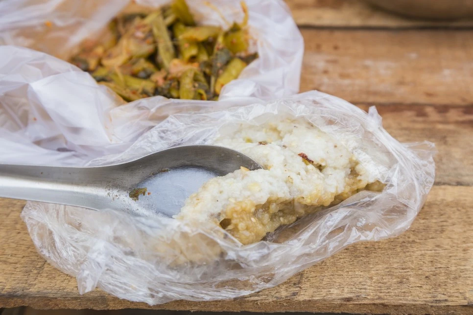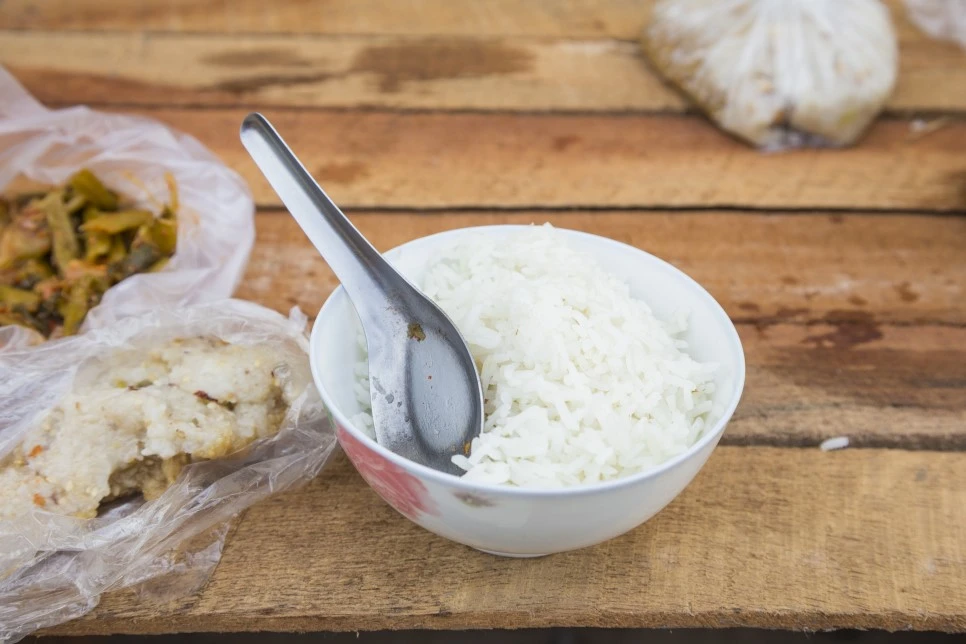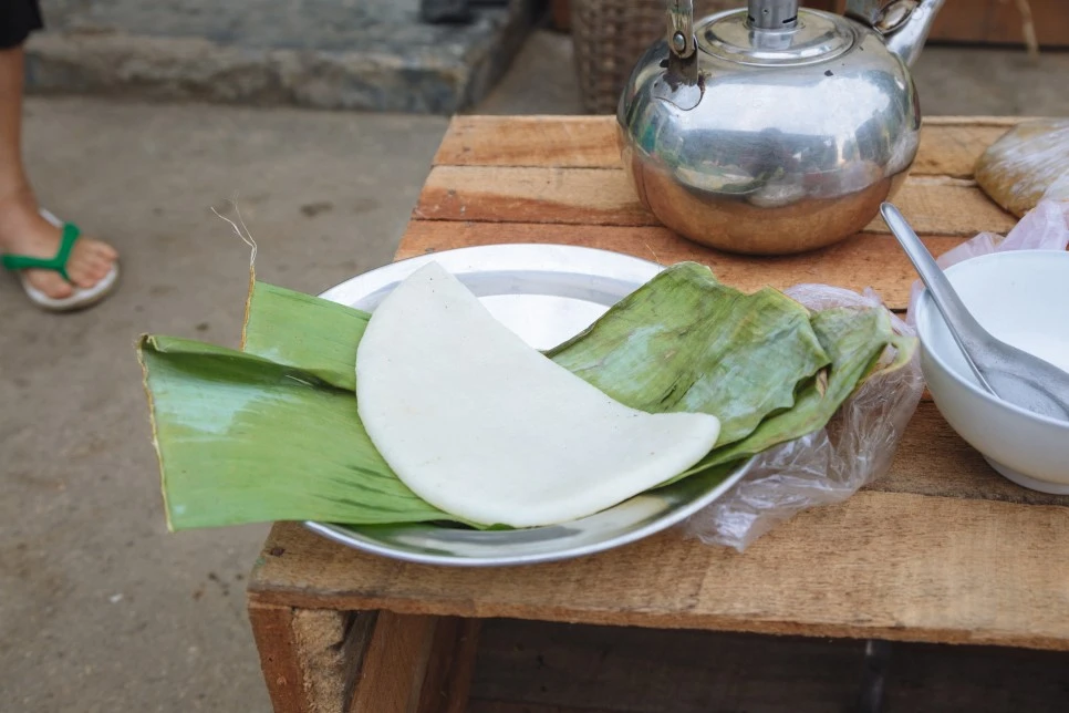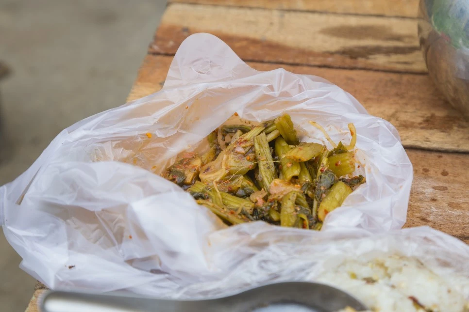 이 칫빳은 한국의 갓김치와 맛이 비슷했다. 양념은 매웠고 한국 김치와는 다르게 채소의 향이 강했다. 이어서 떡을 주셨는데 찰떡처럼 쫀득하면서 맨 아래엔 설탕이 깔려있고 중간중간 잘린 코코넛이 들어 있다. 다음에 주신 것도 떡인데 이건 술빵과 아주 비슷했다. 이어서 밥을 주셨고 내가 밥을 다 먹을 때쯤 동네 아이 둘이 와서 내 앞자리에 앉아 같이 밥을 먹었다. 두 가지 칫빳을 더 맛봤는데 하나는 물이 잘박해 우리나라 물김치와 비슷했고, 다른 하나는 채소에 콩가루를 무친 것으로 나물무침과 비슷했다. 뭐가 제일 맛있냐는 물음에 한국 김치와 비슷한 처음 걸 가리키니 한 끼는 족히 먹을 만큼 싸주셨다.