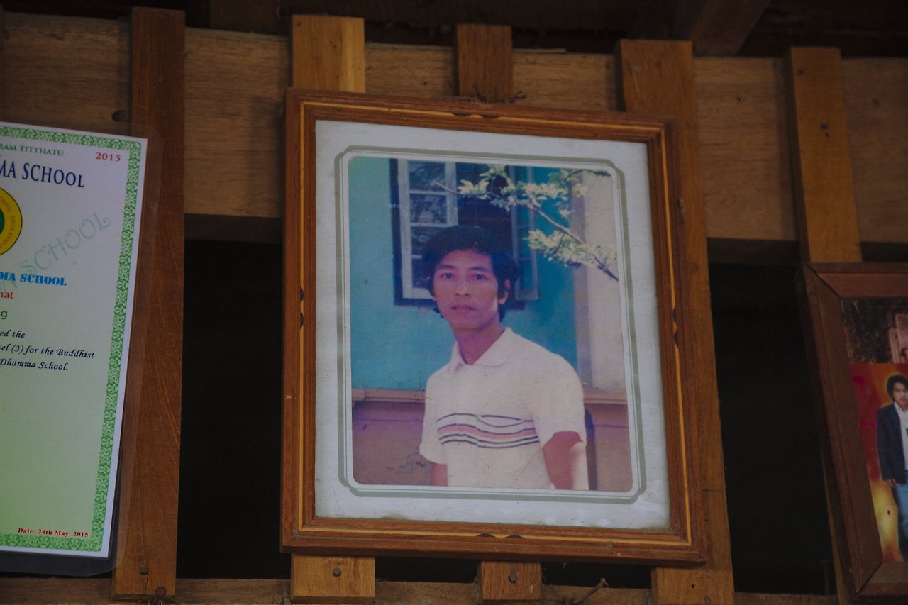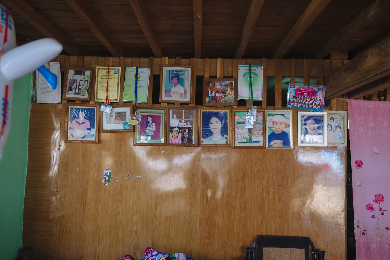 이럴 땐 기억이란 게 꼭 과거의 것은 아닌듯해. 지금의 아저씨 모습은 사진속 젊은이와는 많이 다르지만, 내가 보고 있는 저 얼굴은 수많은 기억이 지층처럼 쌓여서 하나의 표정이 된거잖아. 순간 저 아저씨의 얼굴엔 아내도 있고 양곤에 있는 딸도 있고 밖에서 뛰어노는 아이까지 많은 시간이 쌓여있구나 싶어서 아저씨 얼굴을 찍었어. 언젠가 띠보에 다시 올 기회가 생기면 전해드려서 저 벽에 같이 걸면 좋을 것 같아.