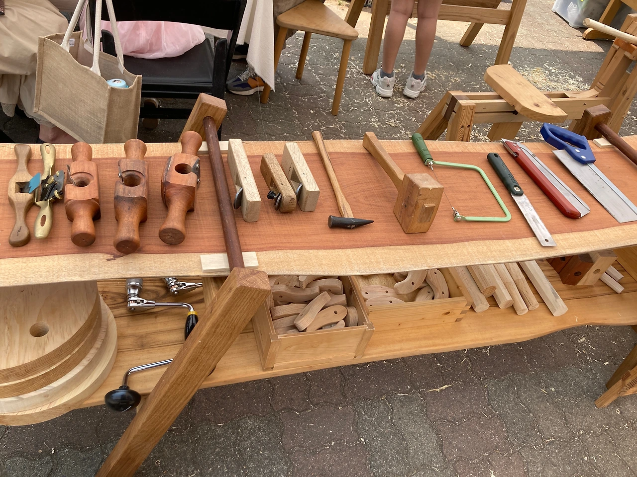 리버마켓에 참여하는 생산자들만큼 다루는 품목과 생산자들의 배치와 구성도 흥미롭다. 흔히 지역축제나 장터에 가면 볼 수 있는 먹거리는 최소화하고 생산자 간 품목이 겹치지 않게 간격을 두어 배치한다. 가령, 목공, 가죽, 옷, 커피, 버섯 등 품목이 겹치지 않도록 띄엄띄엄 한 구간에 하나씩 배치되어 있고, 간단한 음료와 빵 종류도 천천히 구경하고 걷다 보면 하나씩 보이고 어느 곳이든 특성이 뚜렷하다. 또한 목공, 인형, 도자기 체험 등 체험장을 겸한 상품 판매대도 한 곳에 몰려있기보다 곳곳에 자리가 배치돼 있어 전체적인 분위기도 산만하지 않고 순조로우며 선호하는 곳에 가서 쉽게 체험해 볼 수 있다.