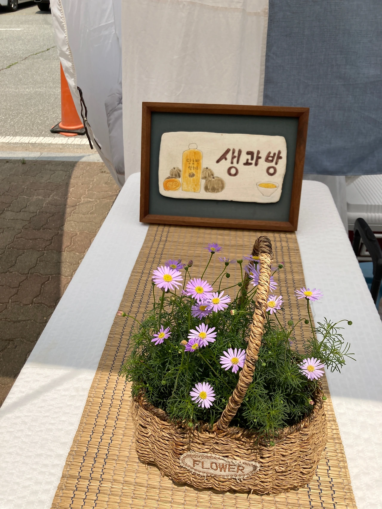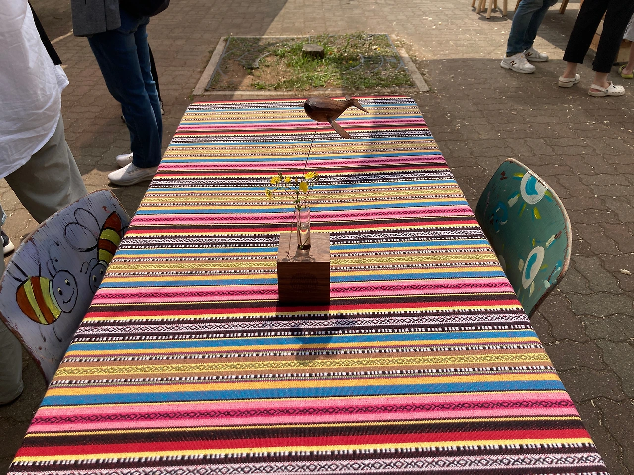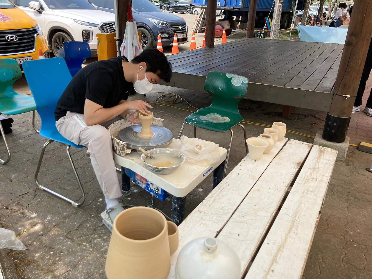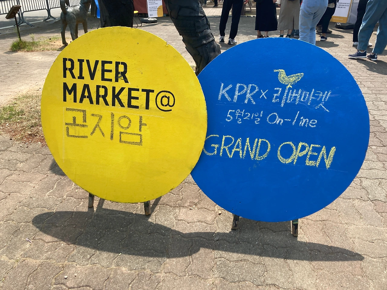 우리는 이곳 리버마켓을 천천히 둘러본다. 어느 하나 급한 것이 없다. 판매대가 일직선으로 늘어진 곳을 걷기도 하고 도자박물관으로 향하는 넓고 열린 곳을 걷기도 한다. 걷다 보면 앉아있고 싶을 때도 있는데, 곳곳에 잠시 쉴 수 있는 공간들이 마련되어 있다. 쉬어가기도 좋고 보기에도 예쁜 테이블과 의자는 작가들이 직접 화분과 그림을 올려놓고 테이블보를 깔아 놓는다. 각자 특성이 묻어나 보기에도 즐겁다.