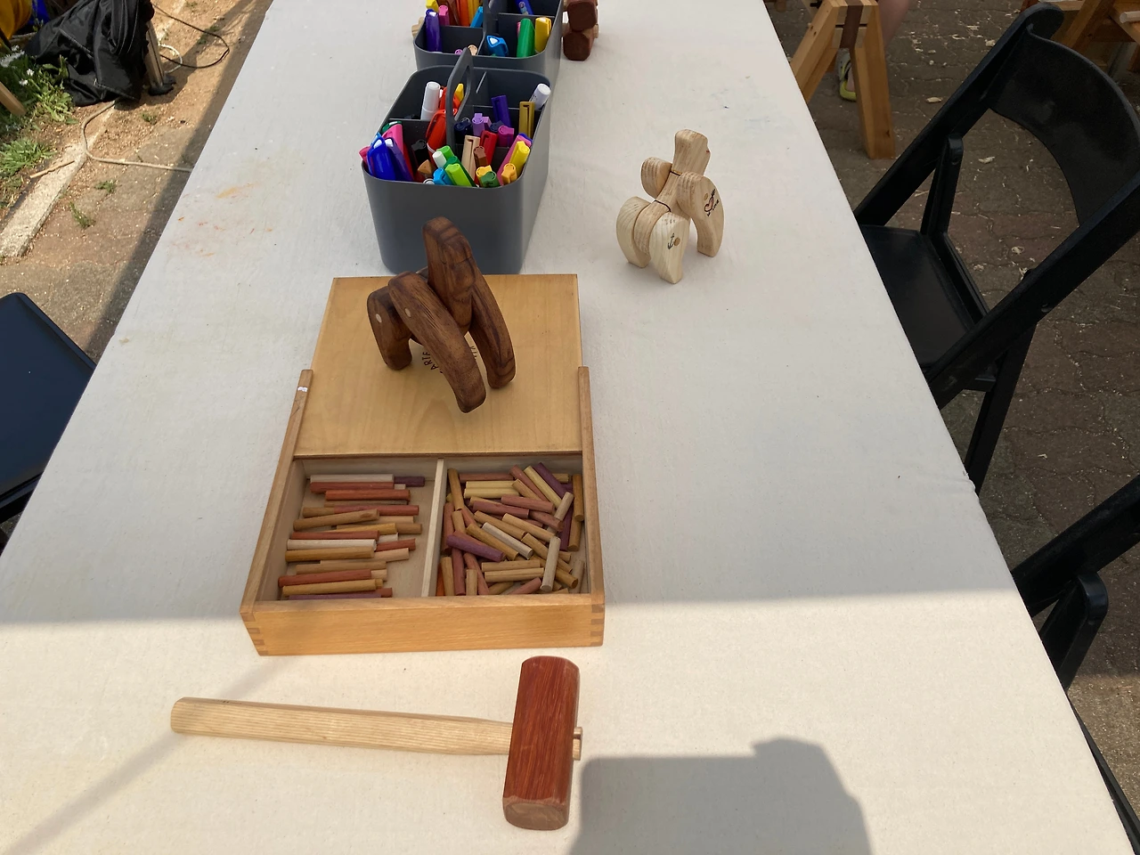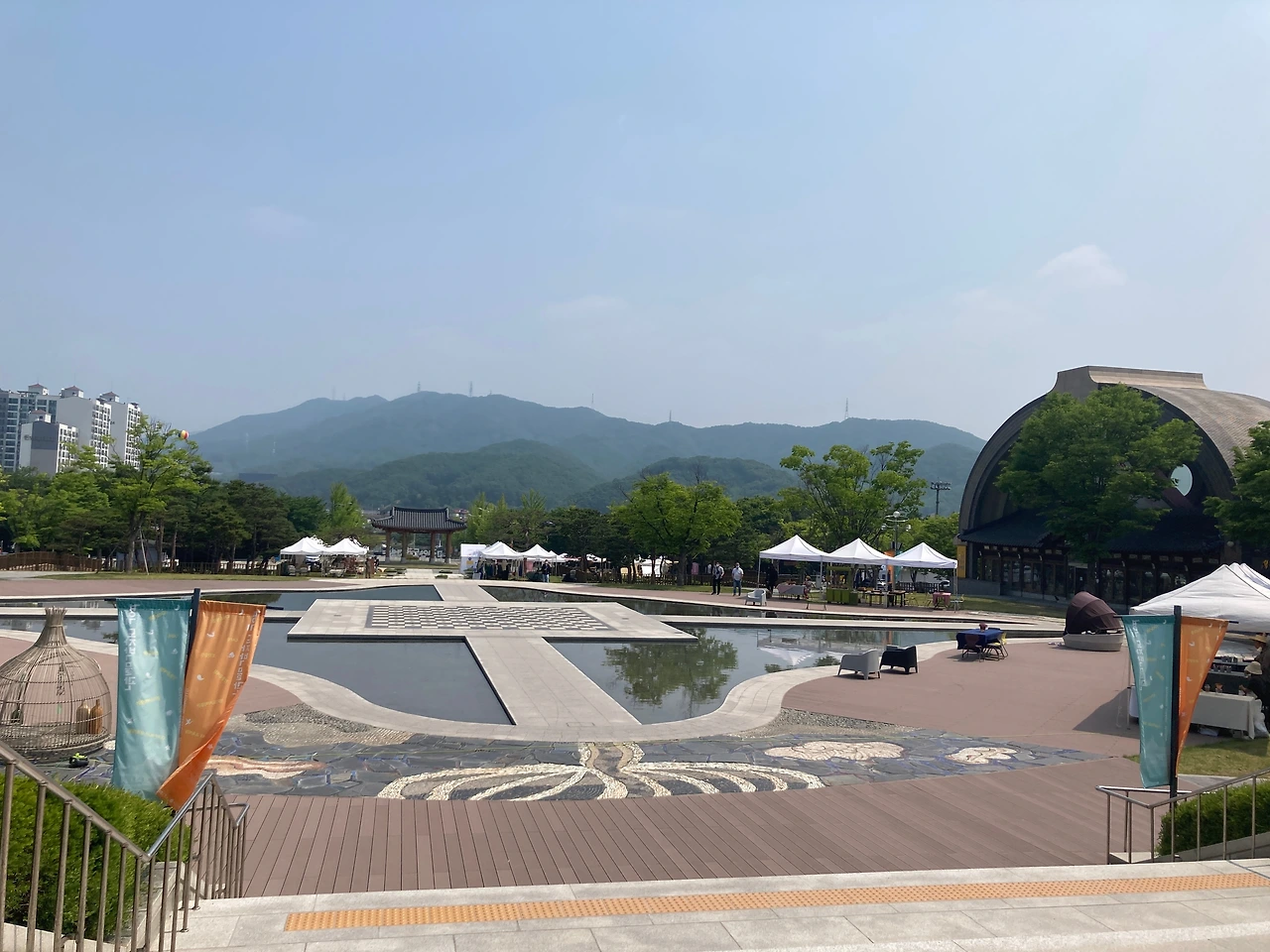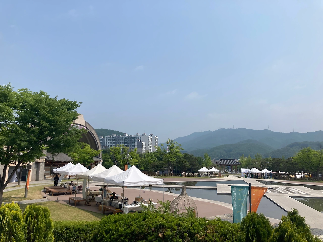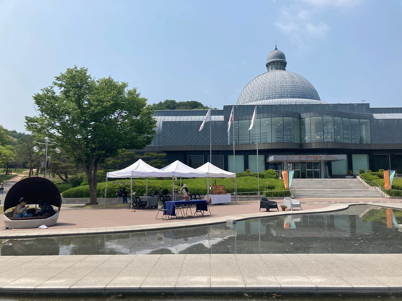 우리는 이곳 리버마켓을 천천히 둘러본다. 어느 하나 급한 것이 없다. 판매대가 일직선으로 늘어진 곳을 걷기도 하고 도자박물관으로 향하는 넓고 열린 곳을 걷기도 한다. 걷다 보면 앉아있고 싶을 때도 있는데, 곳곳에 잠시 쉴 수 있는 공간들이 마련되어 있다. 쉬어가기도 좋고 보기에도 예쁜 테이블과 의자는 작가들이 직접 화분과 그림을 올려놓고 테이블보를 깔아 놓는다. 각자 특성이 묻어나 보기에도 즐겁다.