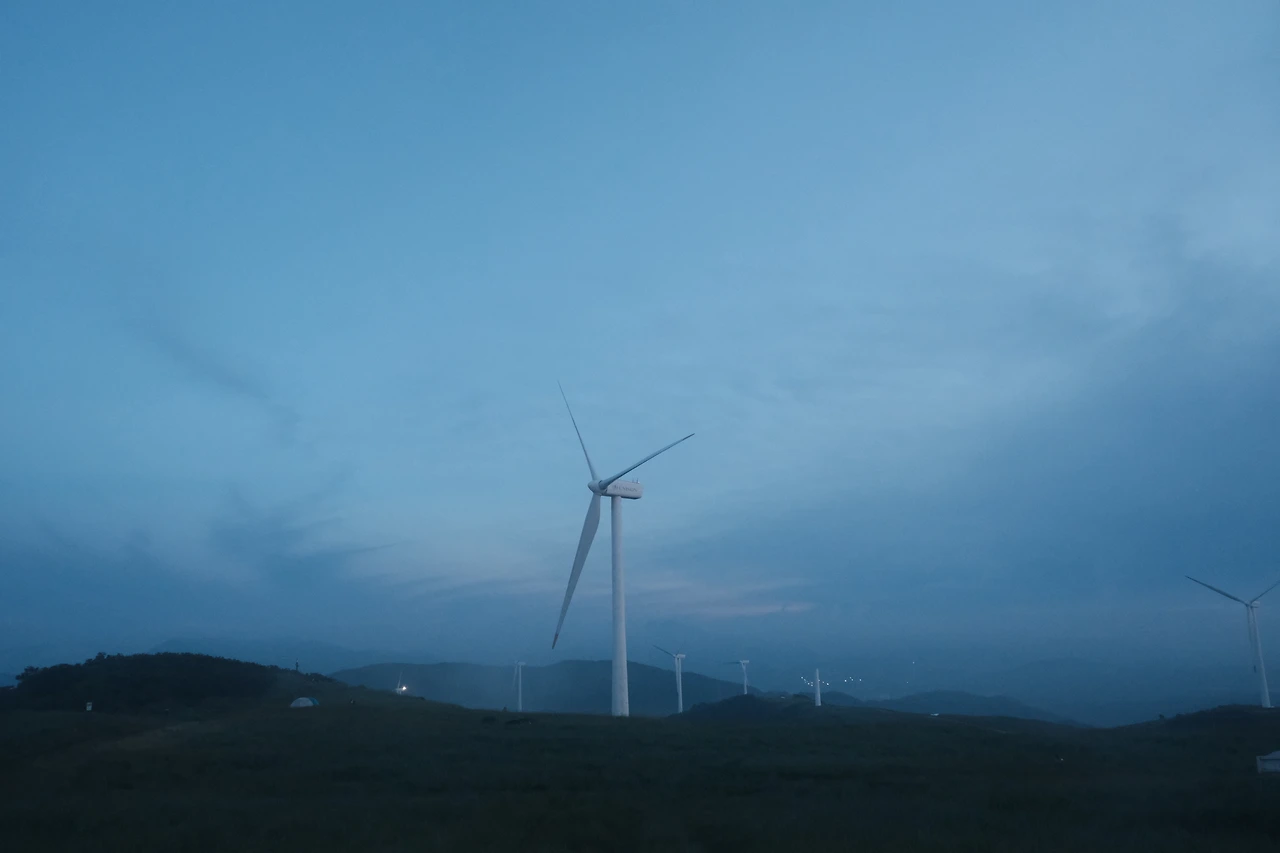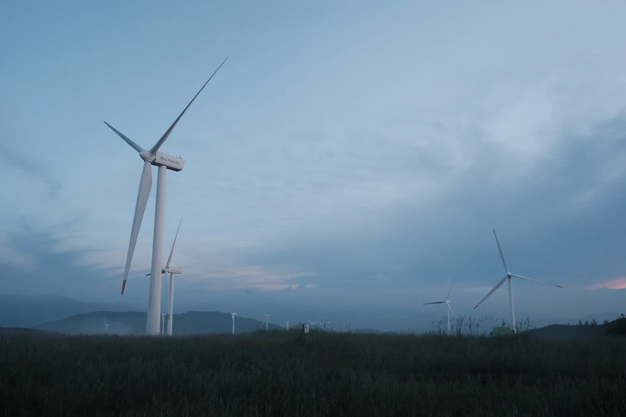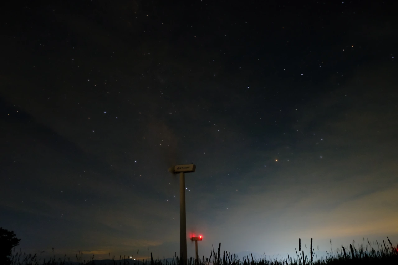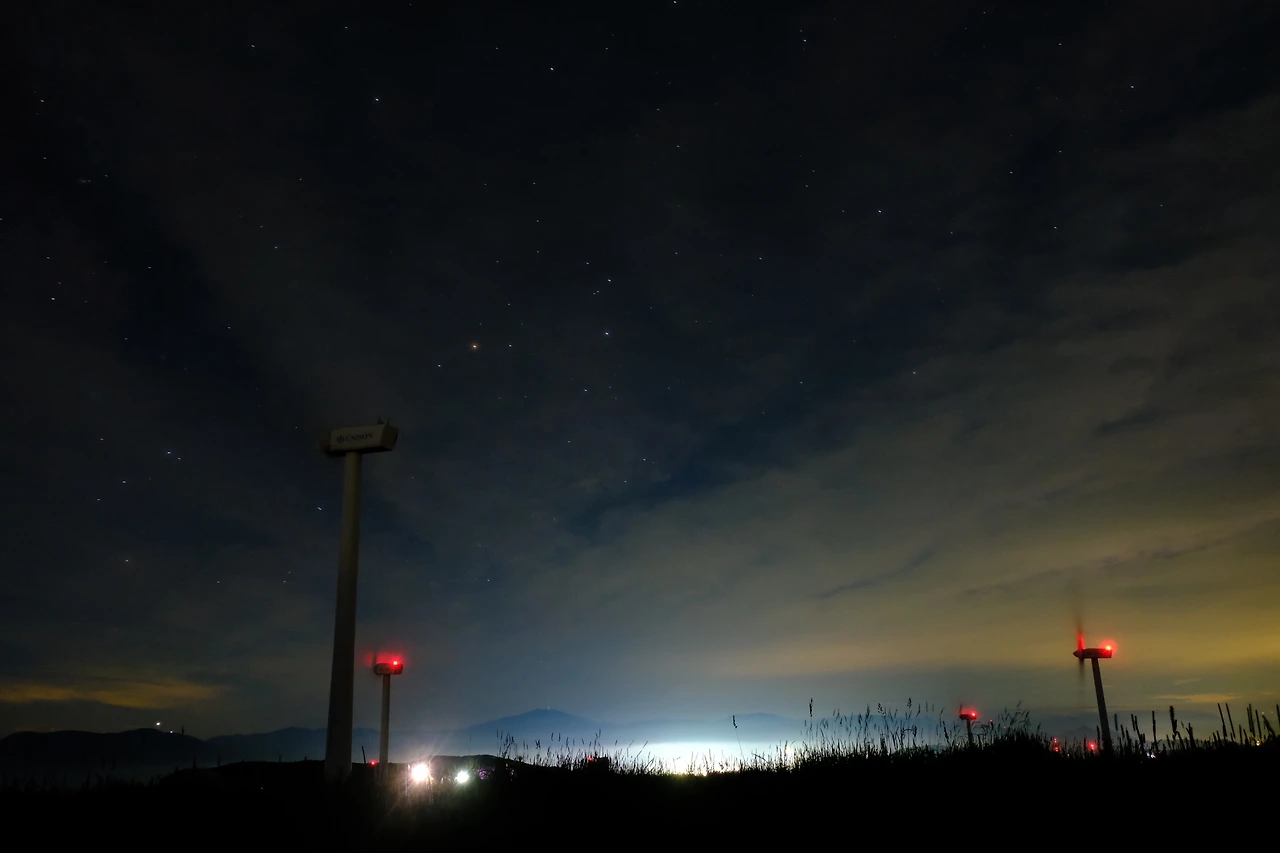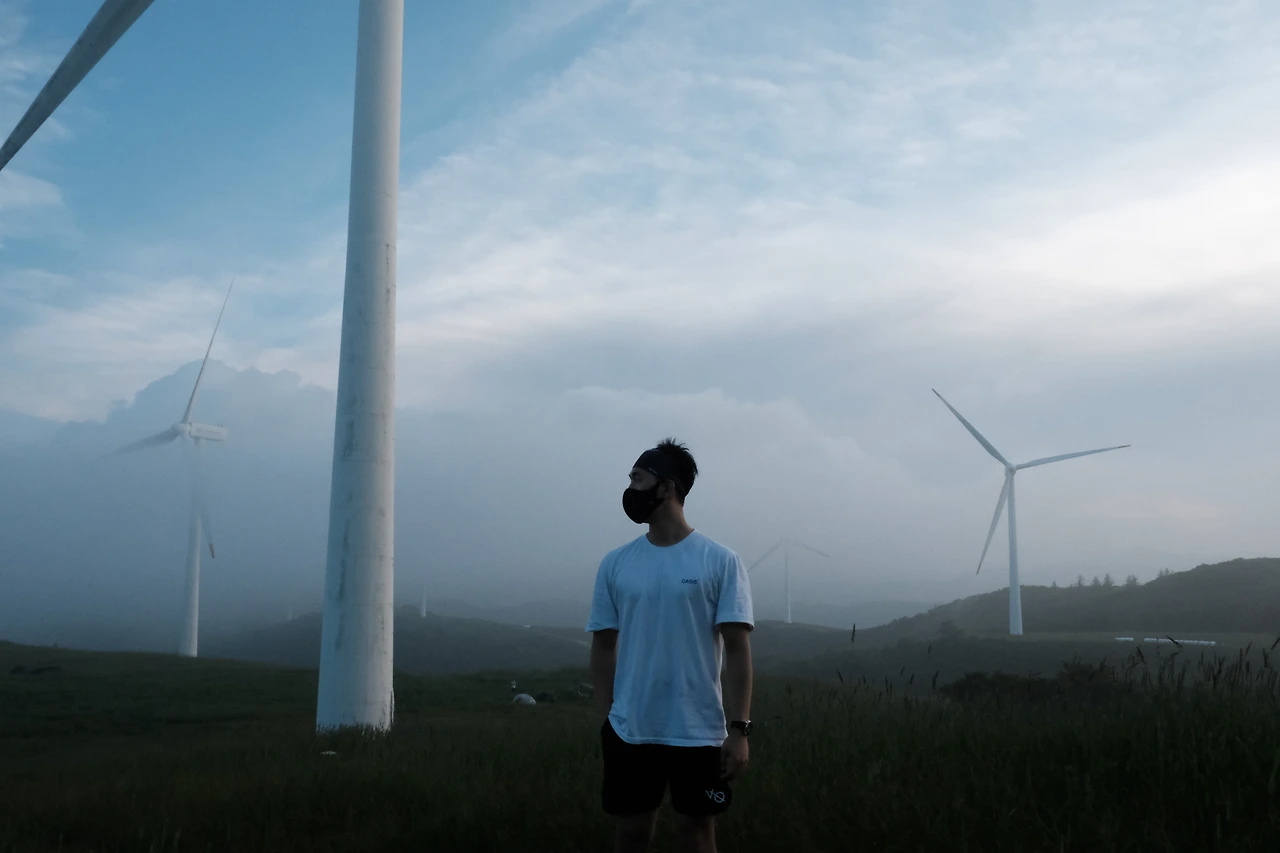 하지만, 찰나의 순간이었다. 안개 속에서 풍력발전기가 거대한 모습을 드러냈다. 생각보다 매우 가까이 있었다. 습기 때문에 카메라를 꺼낼 생각도 못하고 있었던터라 부랴부랴 삼각대를 들고 초원으로 달려갔다.