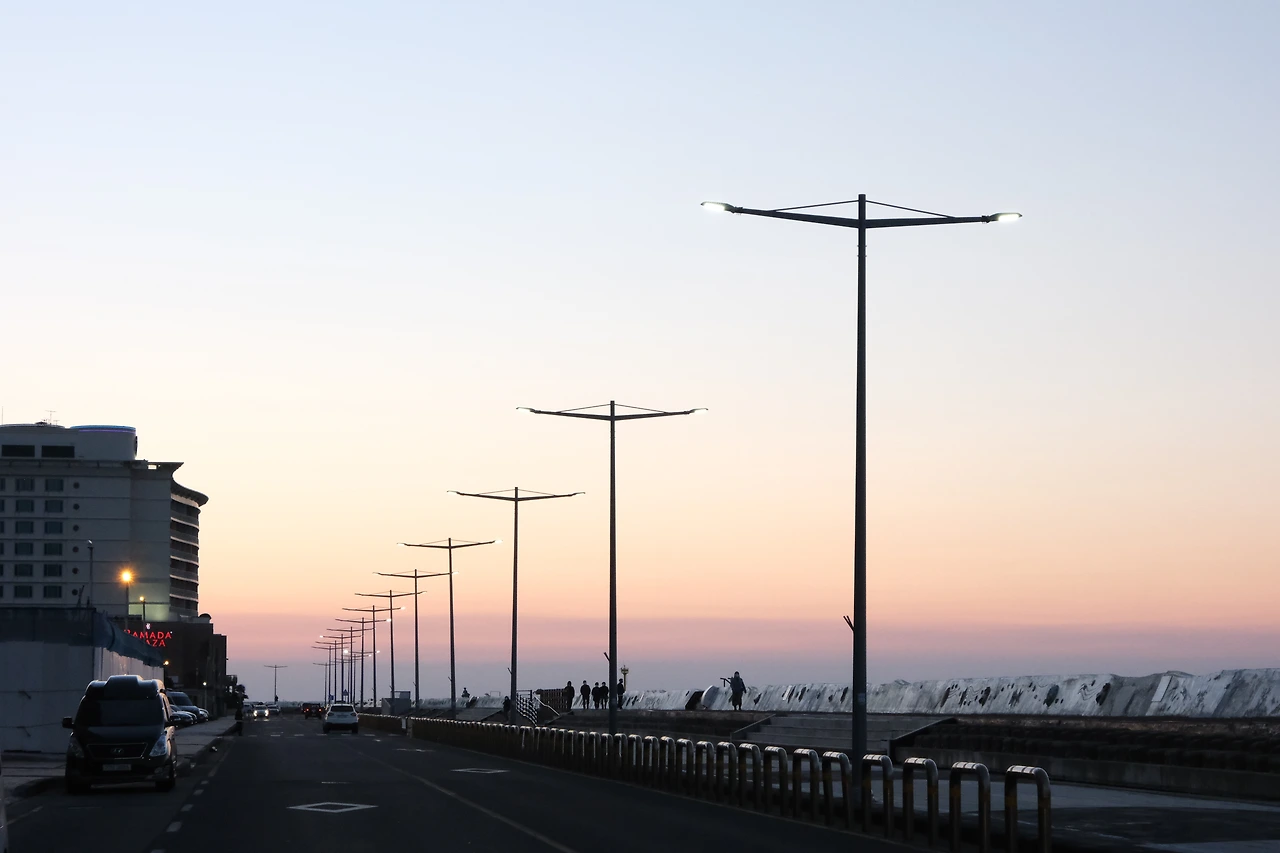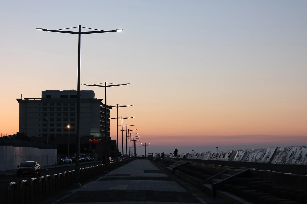 뮤지엄에서 한 시간 정도 시간을 보냈다. 밖으로 나와 아무런 계획이 없었던 나는 무작정 바다가 보이는 곳으로 걸어갔다. 그냥 바다를 보며 파도멍을 하고 싶다는 생각으로 걸어갔지만, 건물 숲을 지나 고개를 돌리니 의도치 않는 낙조가 나를 기다리고 있었다. 제주도에 올 때마다 이곳에서의 낙조는 평생 보아도 질리지 않겠다고 생각을 하는 편인데, 이렇게 기대하지 않은 시점에서 보는 낙조는 감동이 배가 된다. '기대가 크면 실망이 크다'는 말이 어느 정도 합리적인 논리가 되어버린 세상이지만, 이곳에서의 저녁은 기대를 하던 하지 않던 감동이 크다.