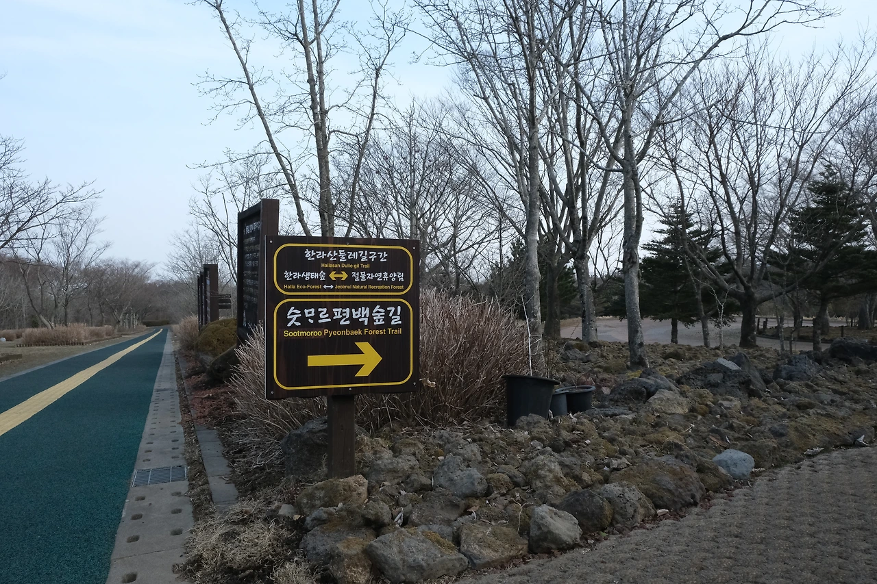 오늘은 한라산 둘레길의 마지막 두 코스를 걸어보기로 한다. 이곳들은 거리도 길지 않고 휴양림과 코스를 공유하여 조성이 잘된 길로 이루어진 곳들이었다. 너무 이르지 않은 아침 버스를 타고 이곳에 도착했다.