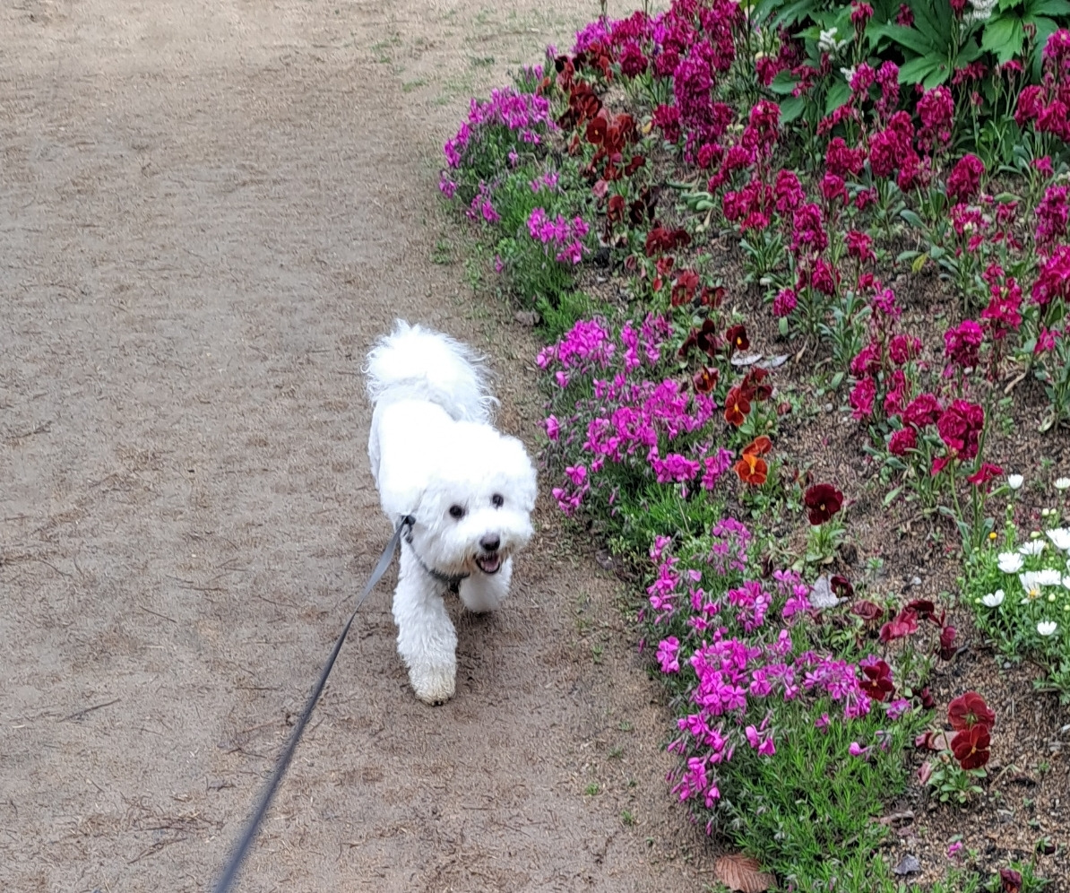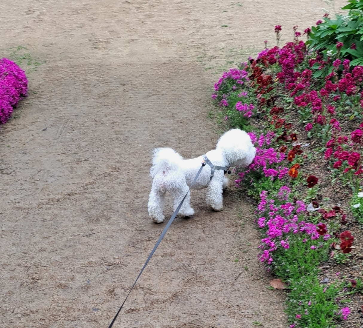 벌름벌름 코로 꽃향기도 맡고, 나무향기도 맡고, 사람 사는 냄새도 맡는 강아지 토토