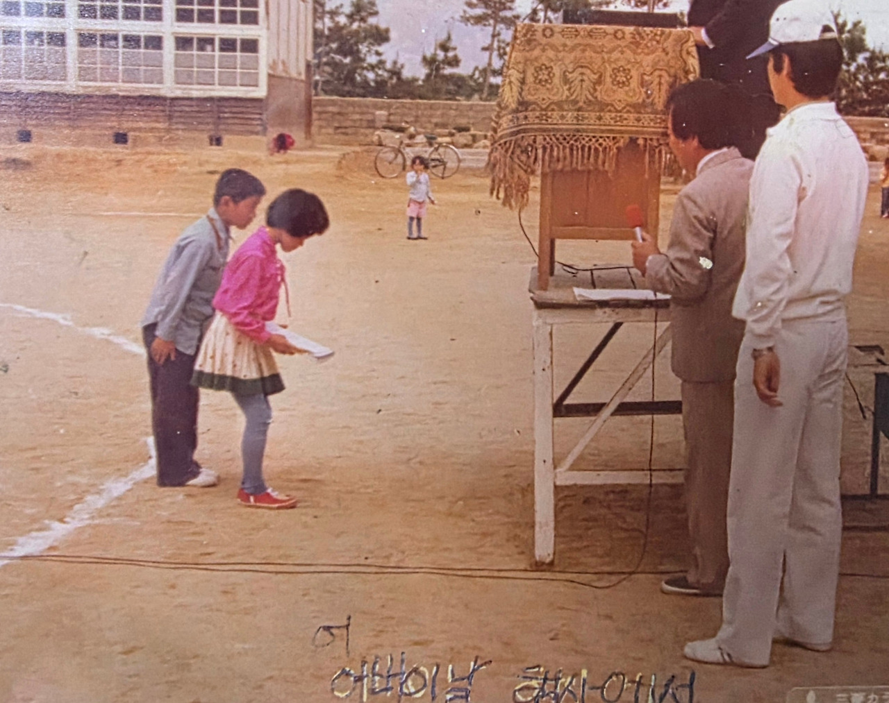 효녀상을 받고 강단 앞에서 글짓기를 낭독하던 나.