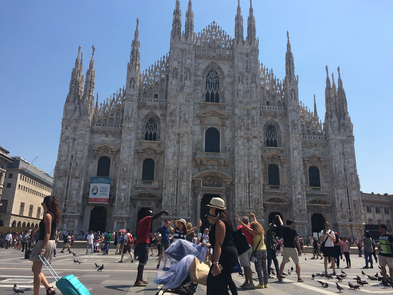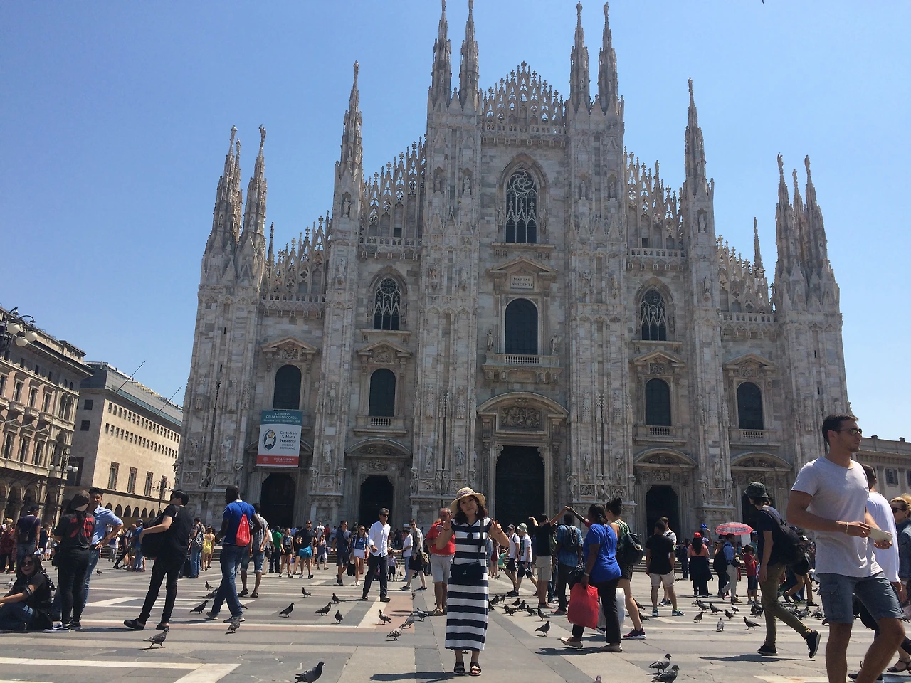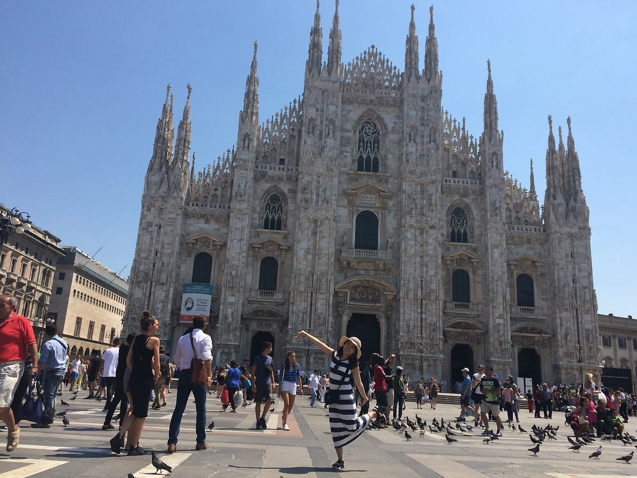 숙소에서 바로 잠을 청하고 둘째 날이 밝았다. 베니스로 가기 위해 짐을 꾸리고 잠시 밀라노를 둘러보았다. 전날의 긴장감 도는 밤 풍경과 달리 매우 화창하고 붐비는 두오모 앞은 비둘기 반 사람 반. 사진을 찍으려고 하면 흑형이 다가와 비둘기 모이를 건넨다. 조심해야 한다.