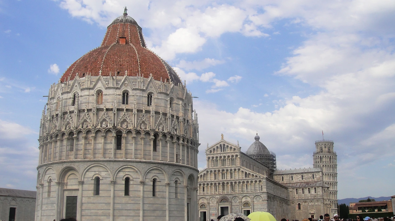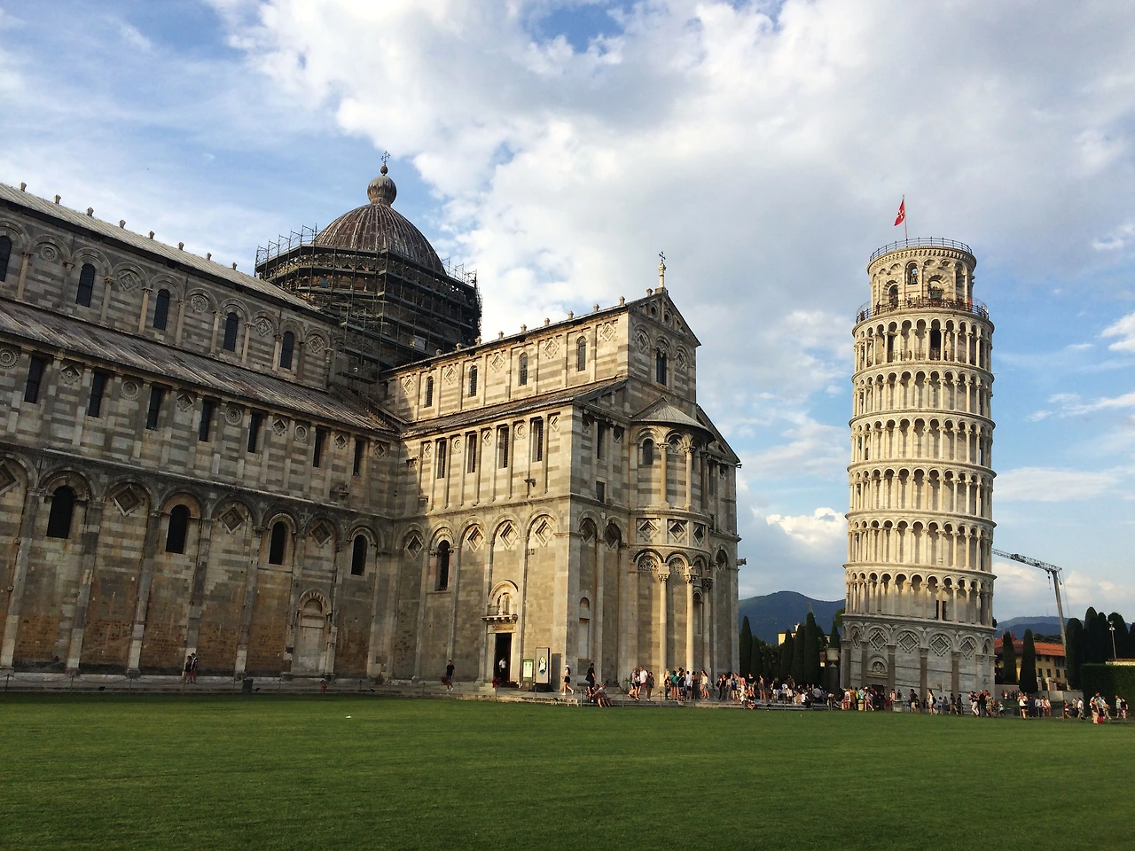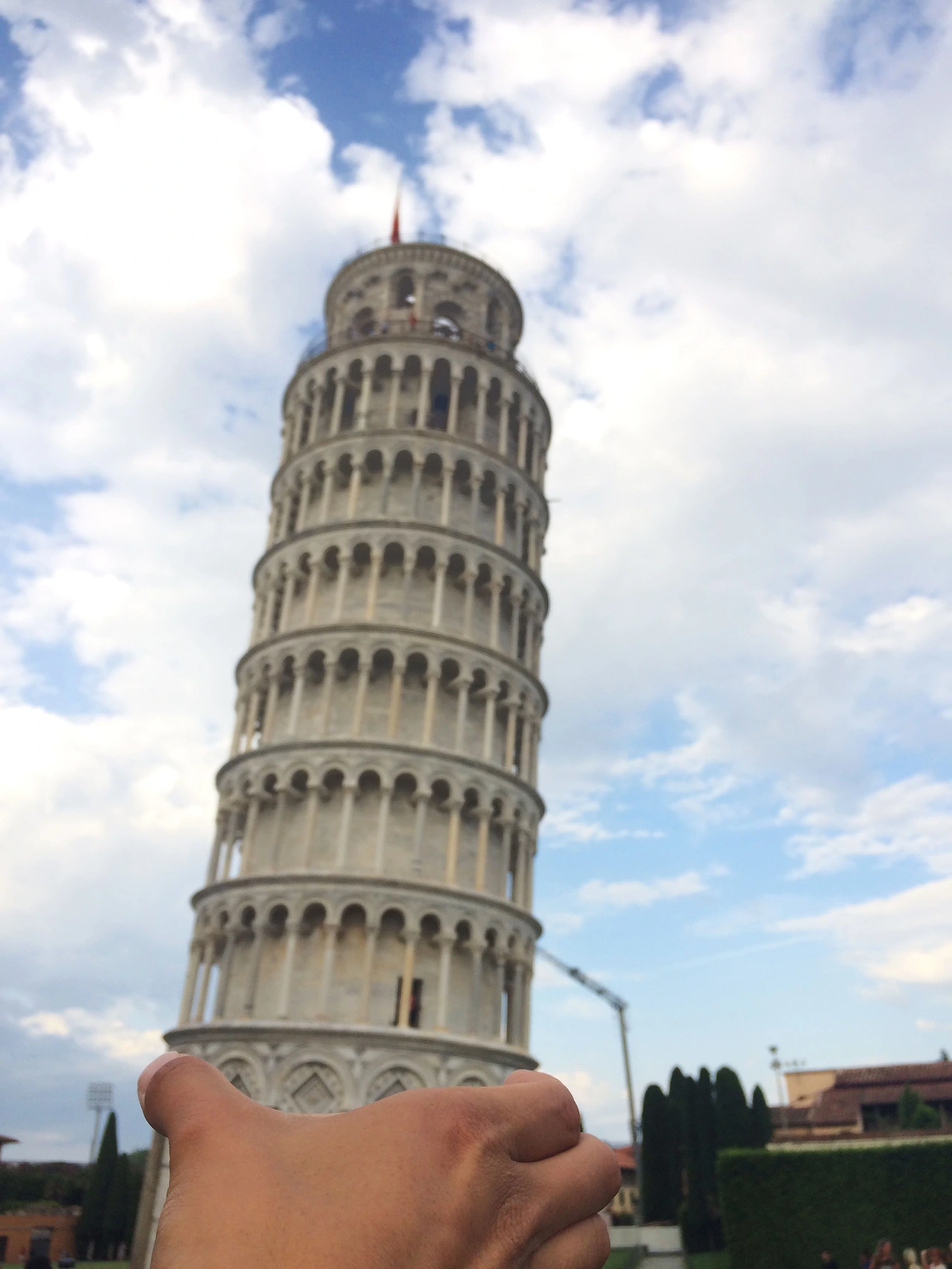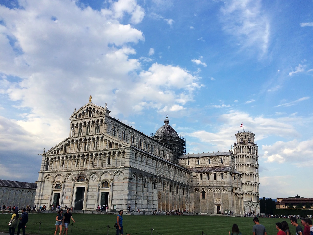 이틀 전, 양이 많아 남겨 온 칼조네로 점심을 해결하고 오후 늦게 미적대며 버스를 타고 피사에 도착했다. 하늘을 합성한 것 같아 보이지만 눈앞에 펼쳐진 광경은 현실이었다. 그곳에는 정말로 이 세 건물밖에 볼 것이 없었는데 그것으로 충분했다.