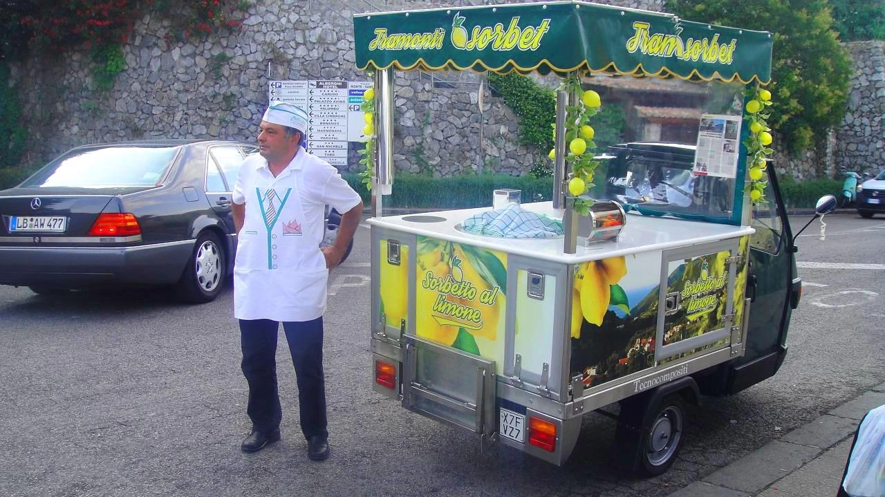 버스 정류장 앞에는 귀여운 차 한 대가 서 있었다. 레몬 셔벗을 팔고 있었는데 아저씨마저 귀여워서 안 살 수가 없었다. 상큼함에 잠시 더위를 잊을 수 있었다.