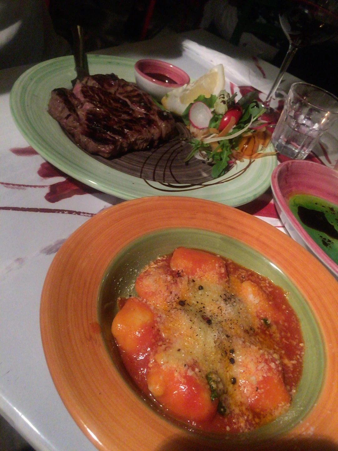 밤이 되니 더욱 이국적인 라벨로. 맛집으로 보이는 식당에서 긴 웨이팅을 하고 밥을 먹었다. Taverna degli Apostoli라고 레스토랑 이름을 기록해놓은 것을 보니 맛이 좋았나 보다. 뇨끼를 처음 먹어봤는데 굉장히 신선했다. 스테이크 맛이 매우 흡족했는지 메모에 별도로 표시도 해놓았다.