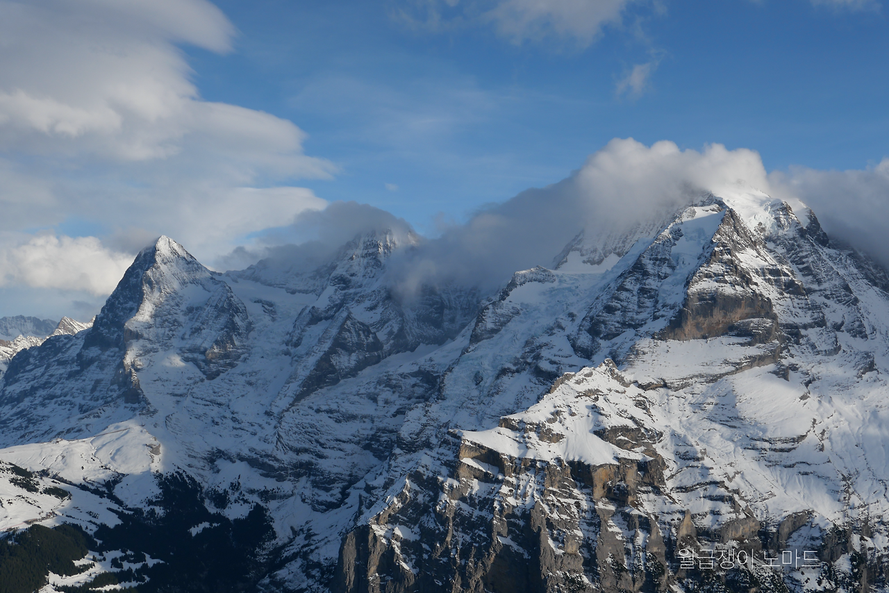 기차를 세 번이나 갈아타고 4시간 만에 도착한 뮈렌은 아주 작은 마을로, 둘러보는데 1시간이 채 걸리지 않았고, 스키어들과 여행객들로 적당히 붐비는 곳이었다. 그린델발트나 인터라켄보다 조용하지만 적당한 즐길거리가 있었고 무엇보다 알프스의 3대 미봉이라 불리는 아이거, 묀히, 융프라우를 조망할 수 있는 곳이었다. 융프라우에 오르는 것도 좋지만 그 아름다운 봉우리를 맞은편에서 바라보고 싶었다.