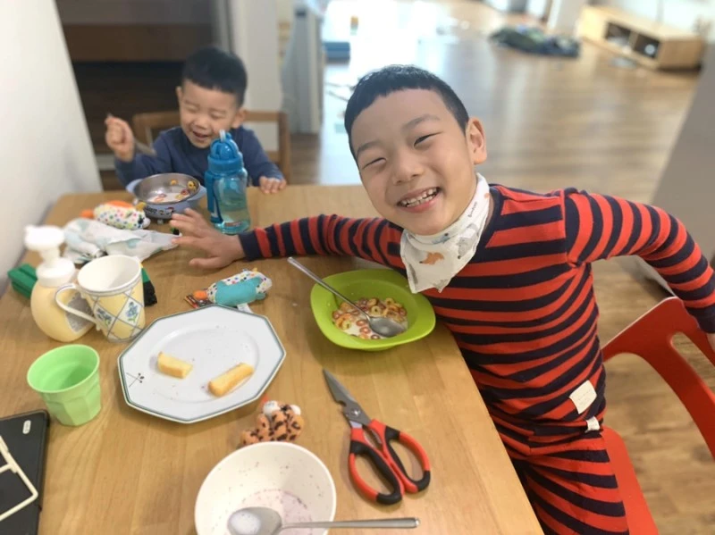 두 아들과 24시간 밀착 생존 육아 중이다.
